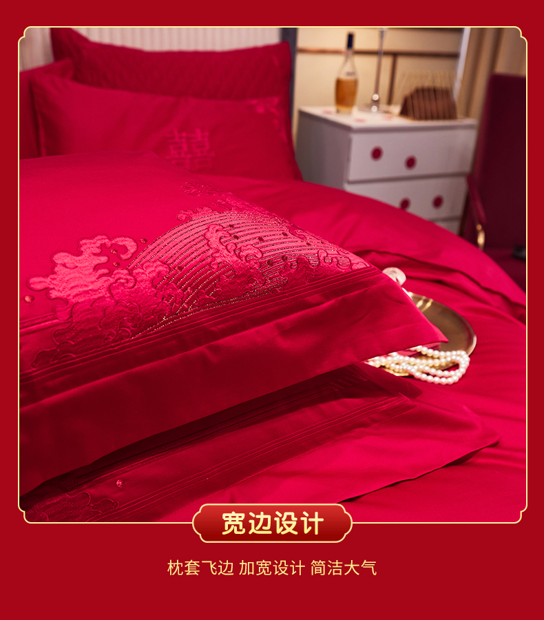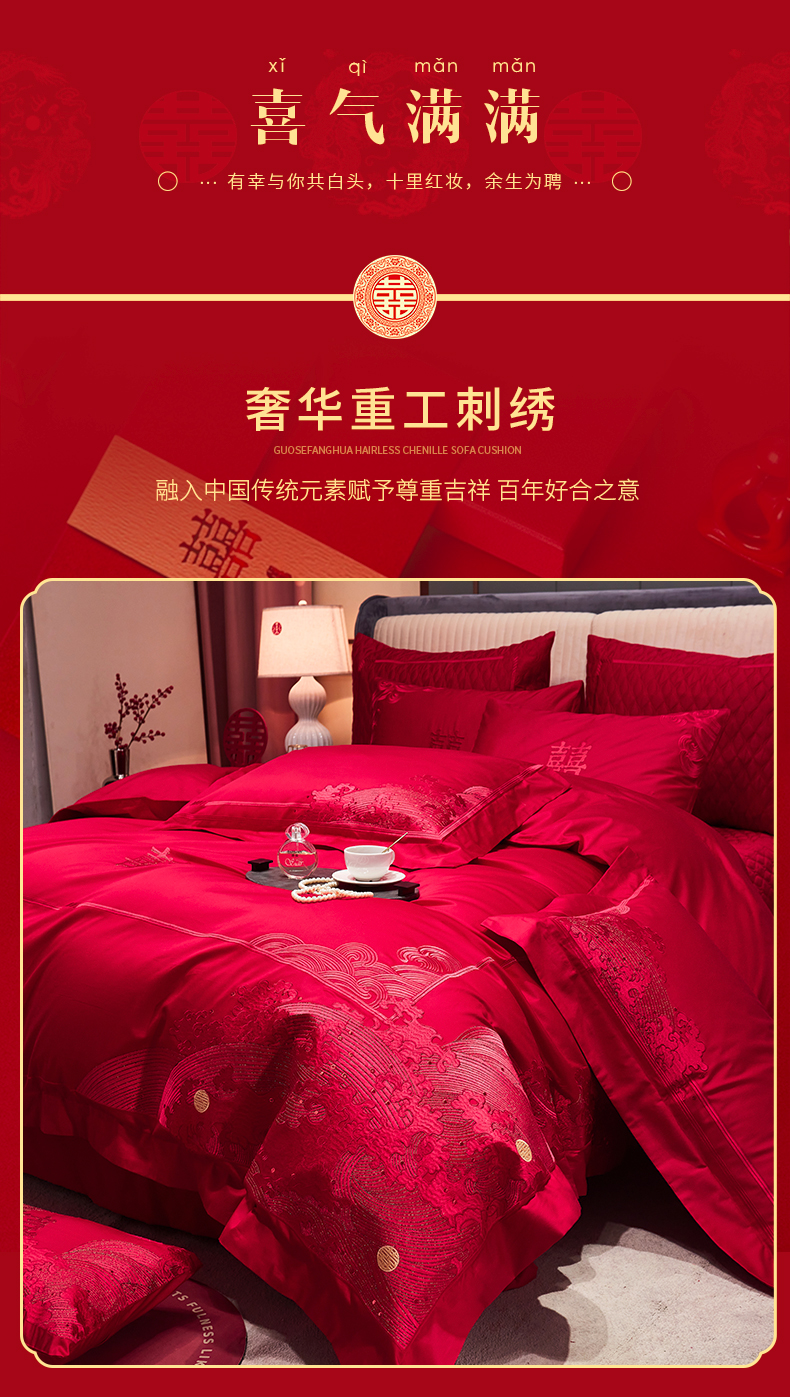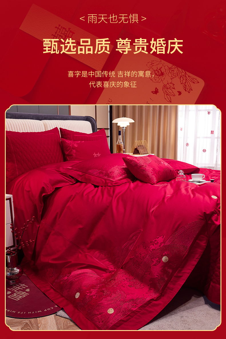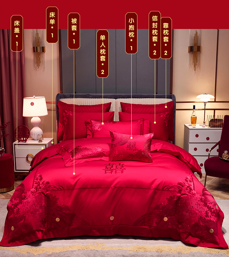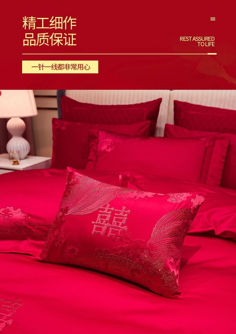 当前位置: 91家纺网 > 商品网购 > 床品套件 > 四件套 > 婚庆四件套 > 美娘阁 2025新款长绒棉贡缎提花古典新中式奢华精美刺绣四件套系列二 一往情深
