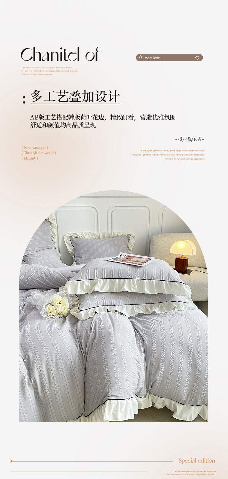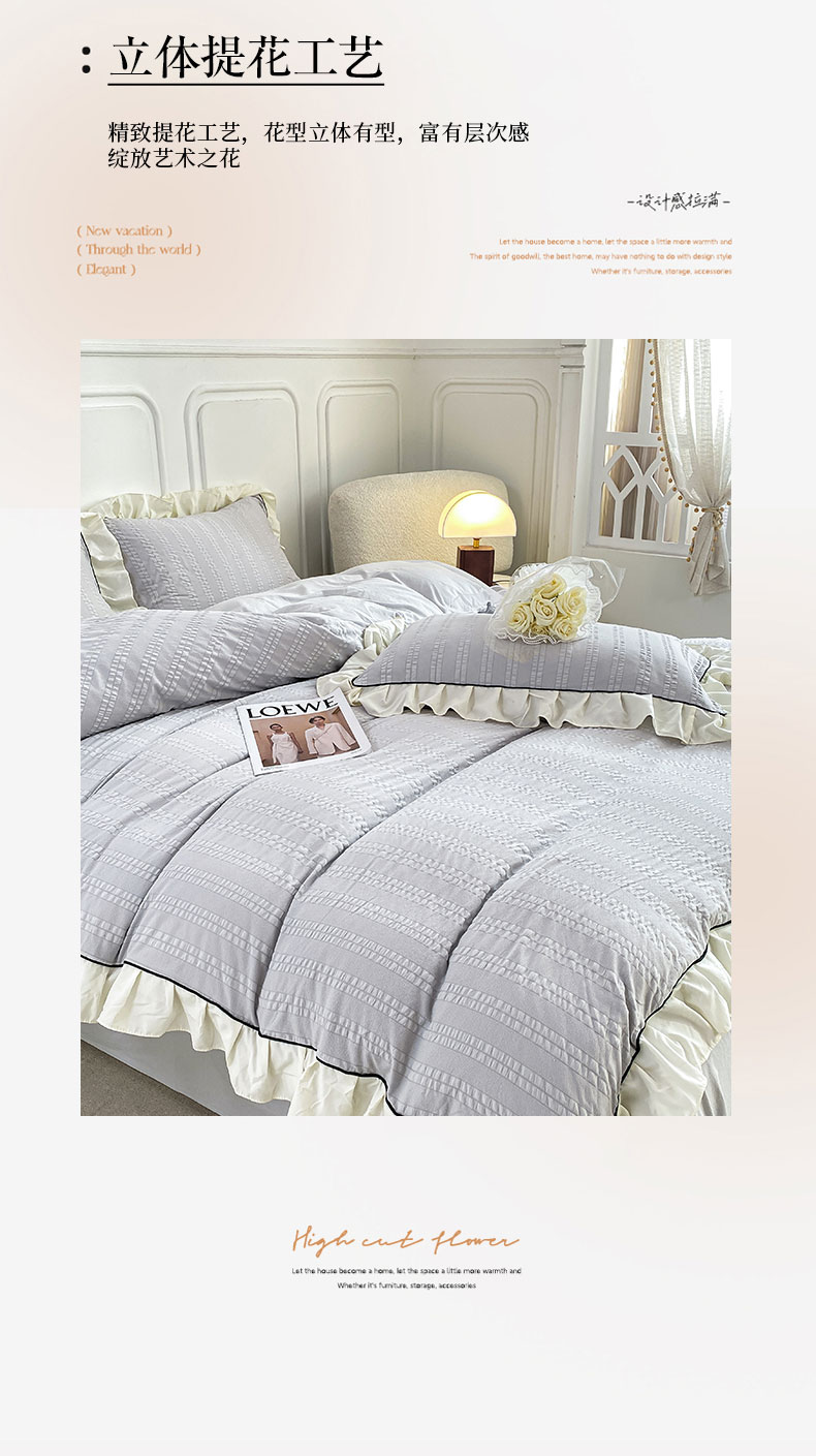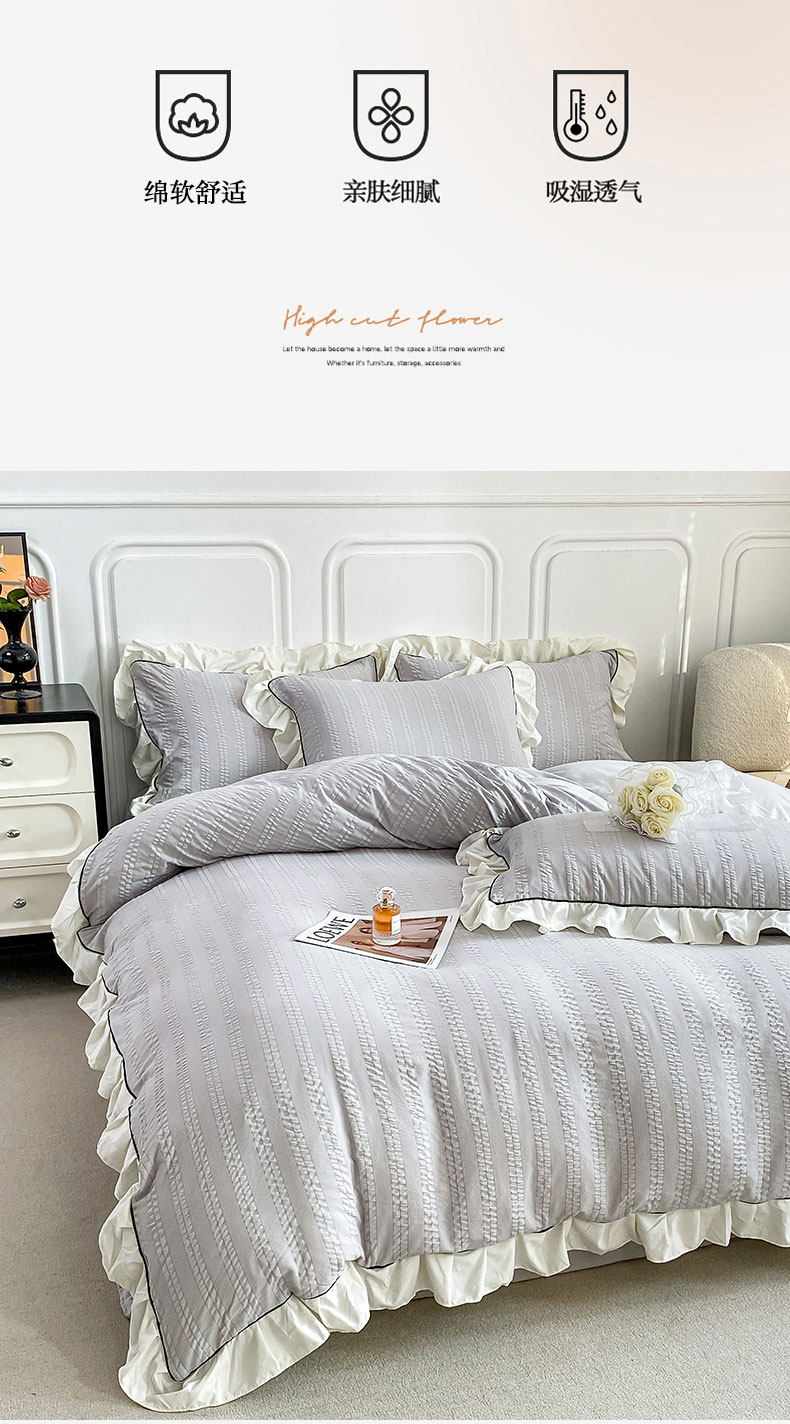 商品名称:大境 2024新款小提花韩版公主风小清新轻奢四件套三件套 优雅灰