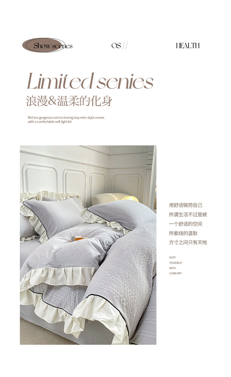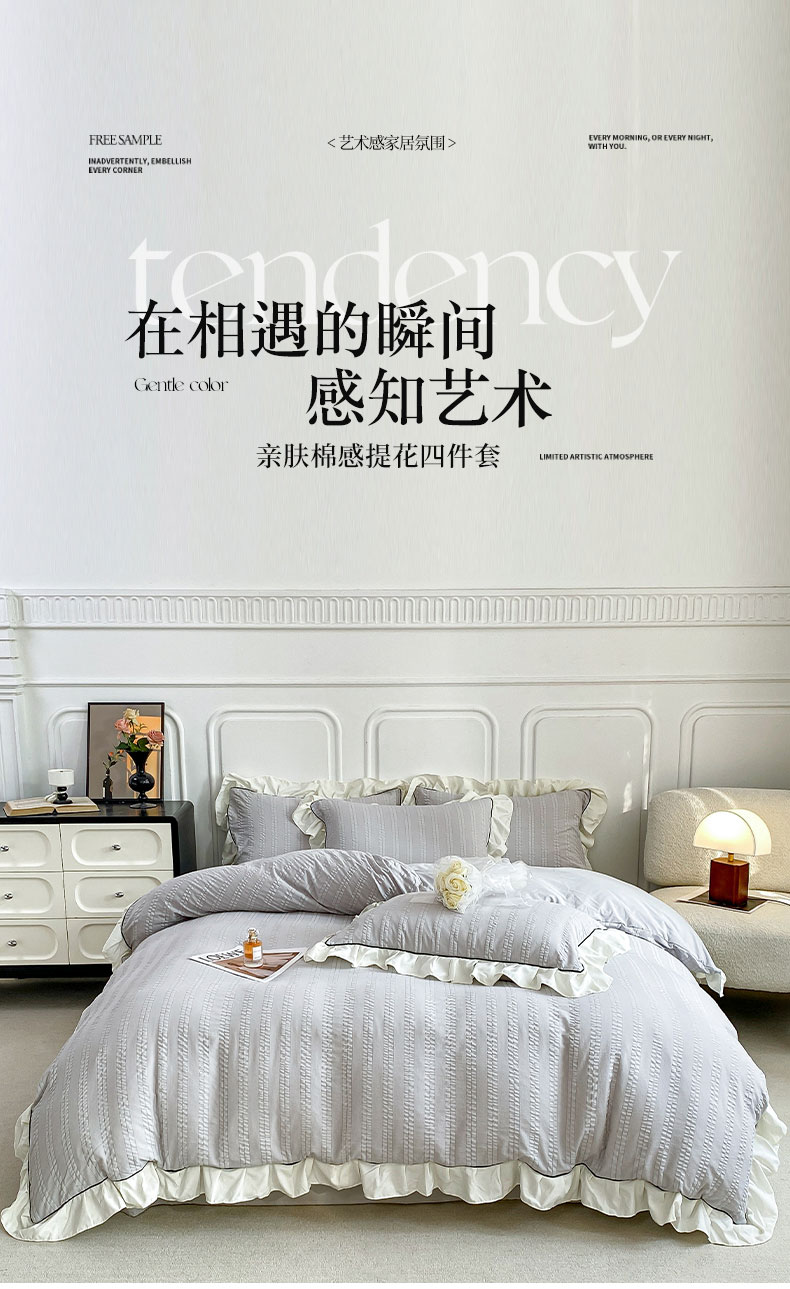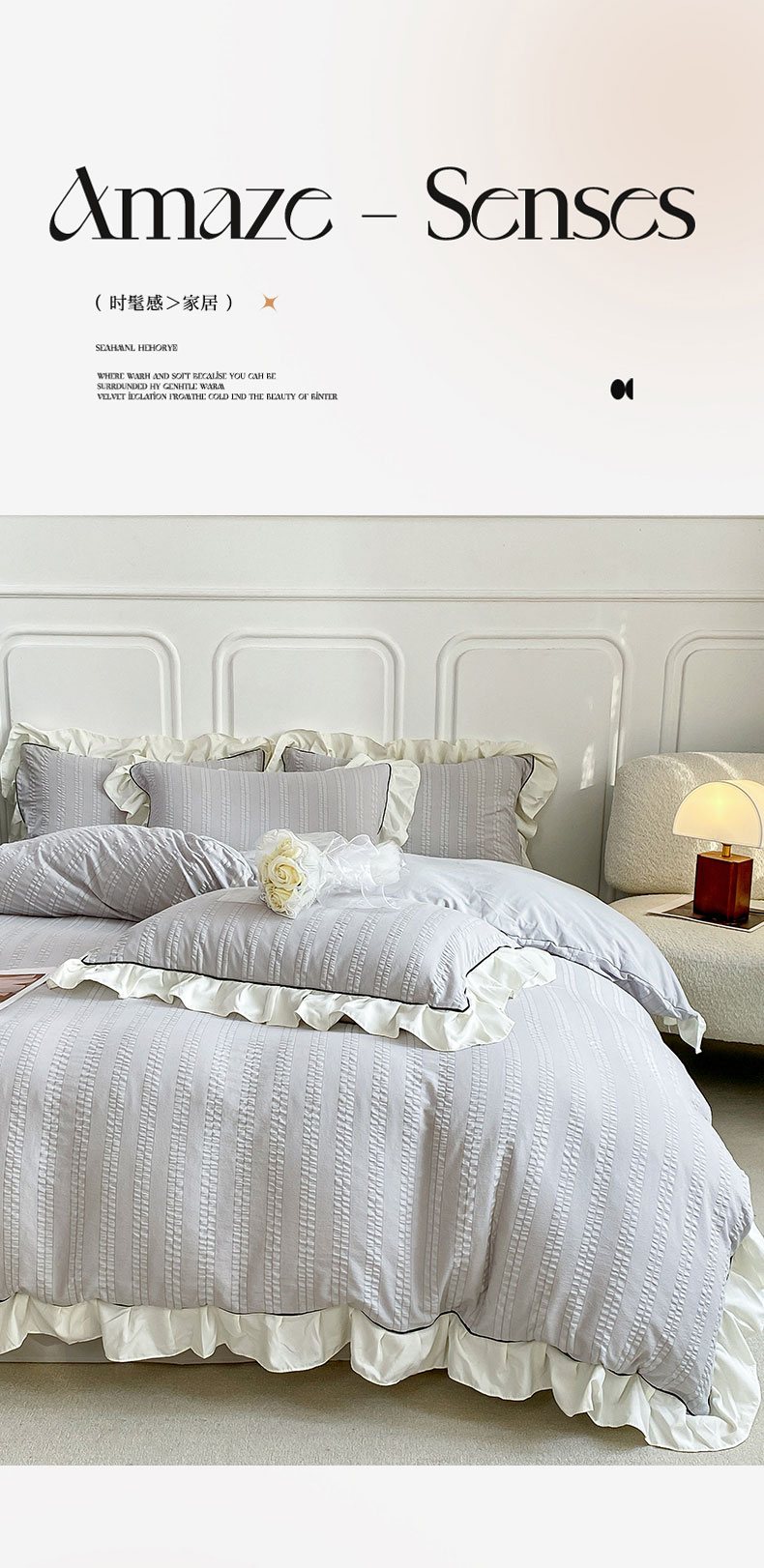 商品名称:大境 2024新款小提花韩版公主风小清新轻奢四件套三件套 优雅灰