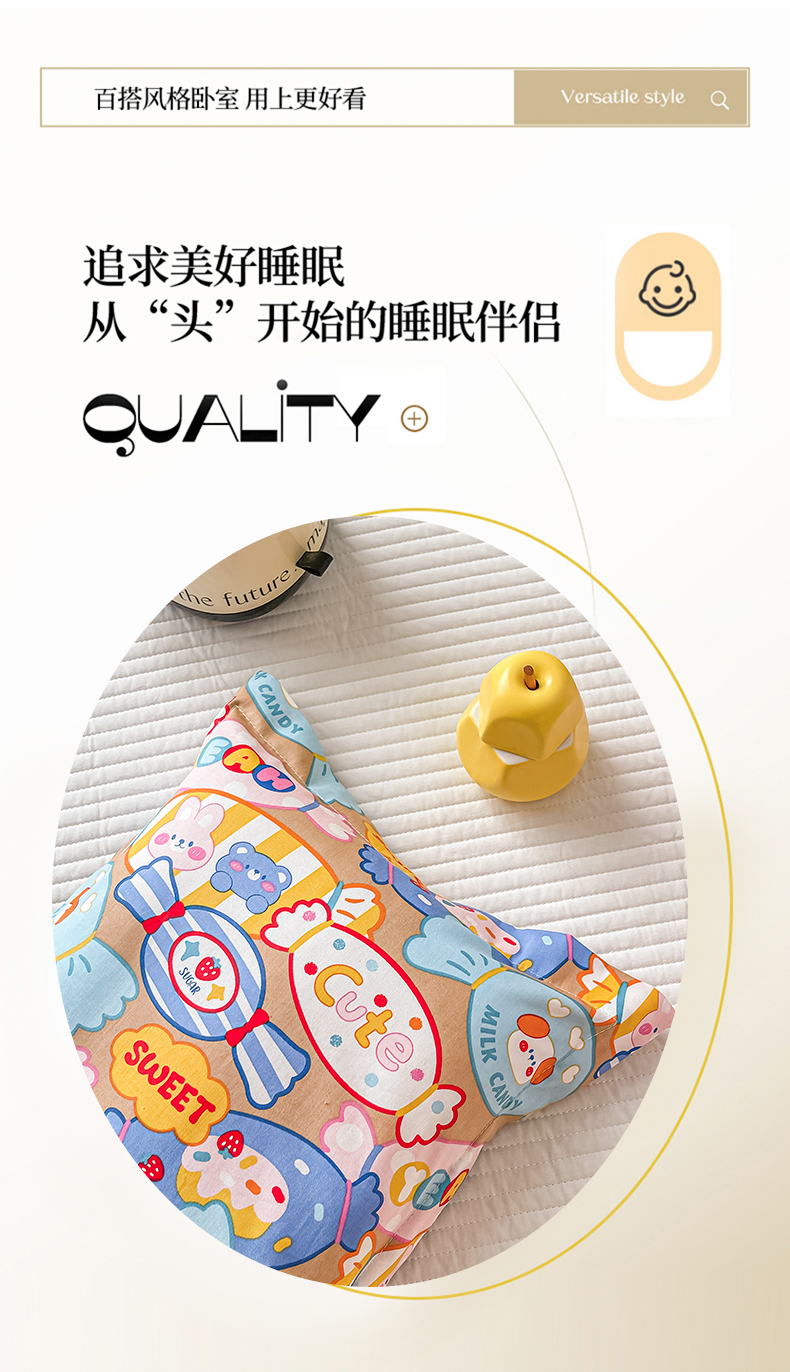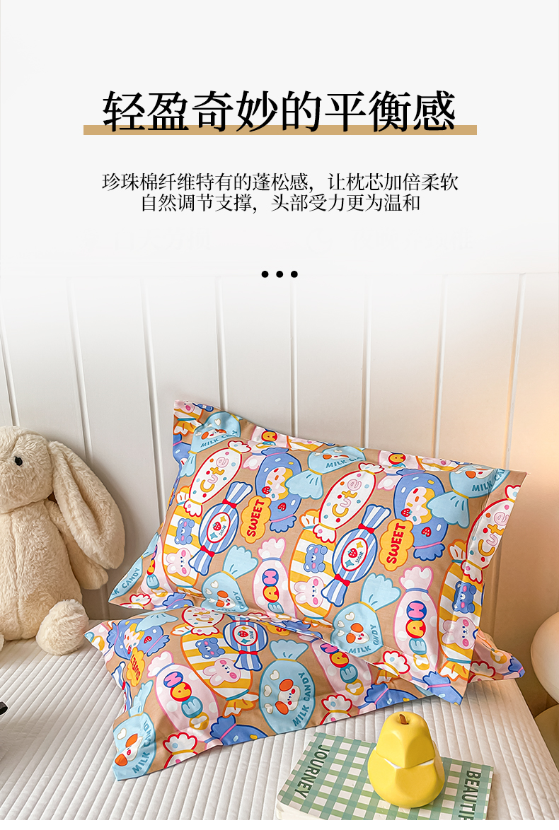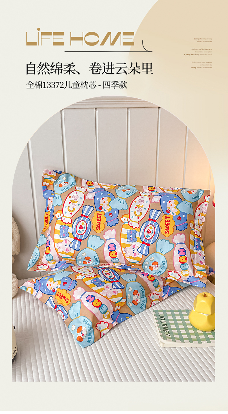 商品名称:金帛坊 2024新款100%全棉信封枕套儿童可拆卸枕芯枕头 糖果甜心