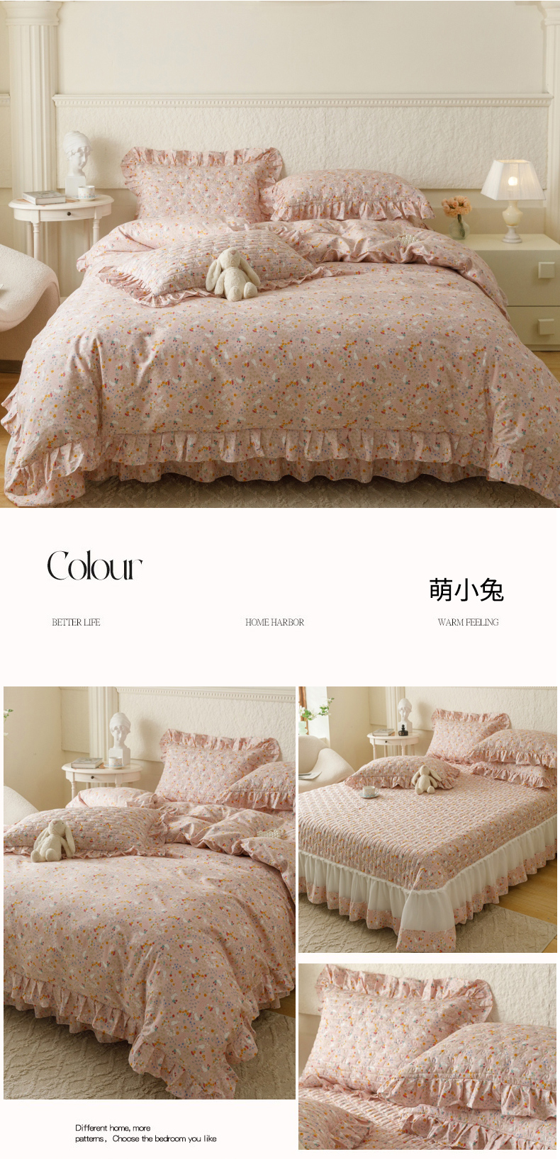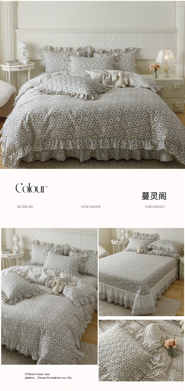 (总)胜权 2024新款高端欧根纱全棉印花夹棉床盖四件套