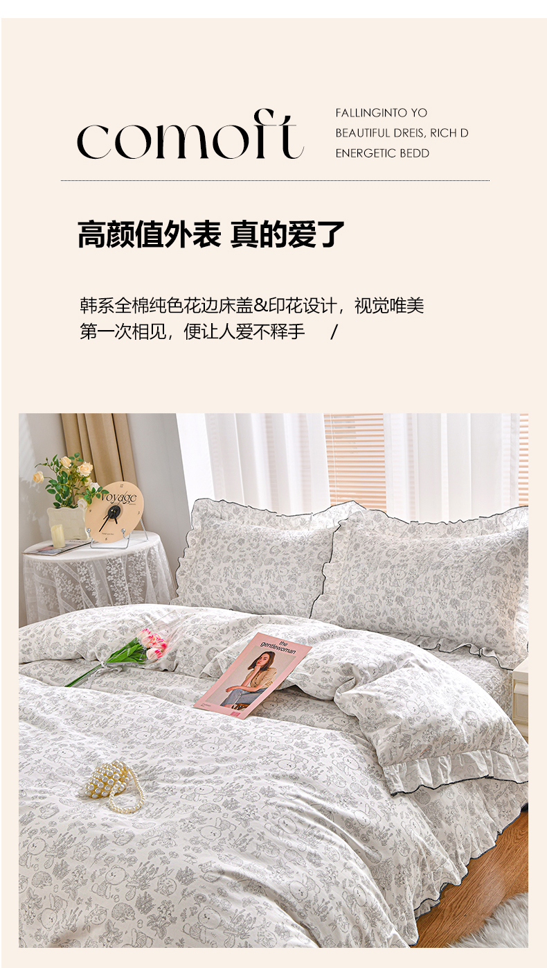 当前位置: 91家纺网 > 商品网购 > 床品套件 > 四件套 > 全棉普通四件套 > 梦精灵家纺 2025新款韩系花边全棉床盖四件套 布朗熊