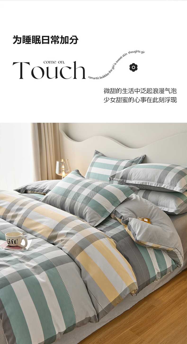 (总)珂博家纺 2025新款韩版花边四件套纯棉全棉水洗棉四件套,粉小格,蓝小格,浅绿小格,浅粉小格,绿小格,咖小格