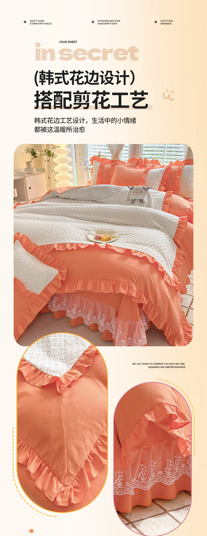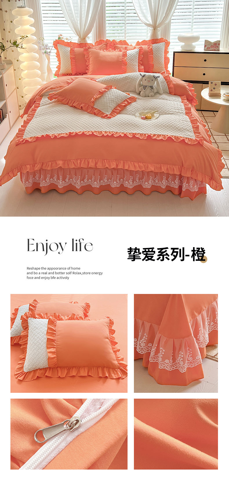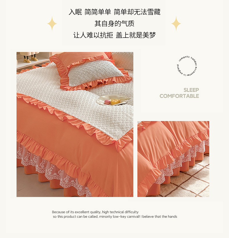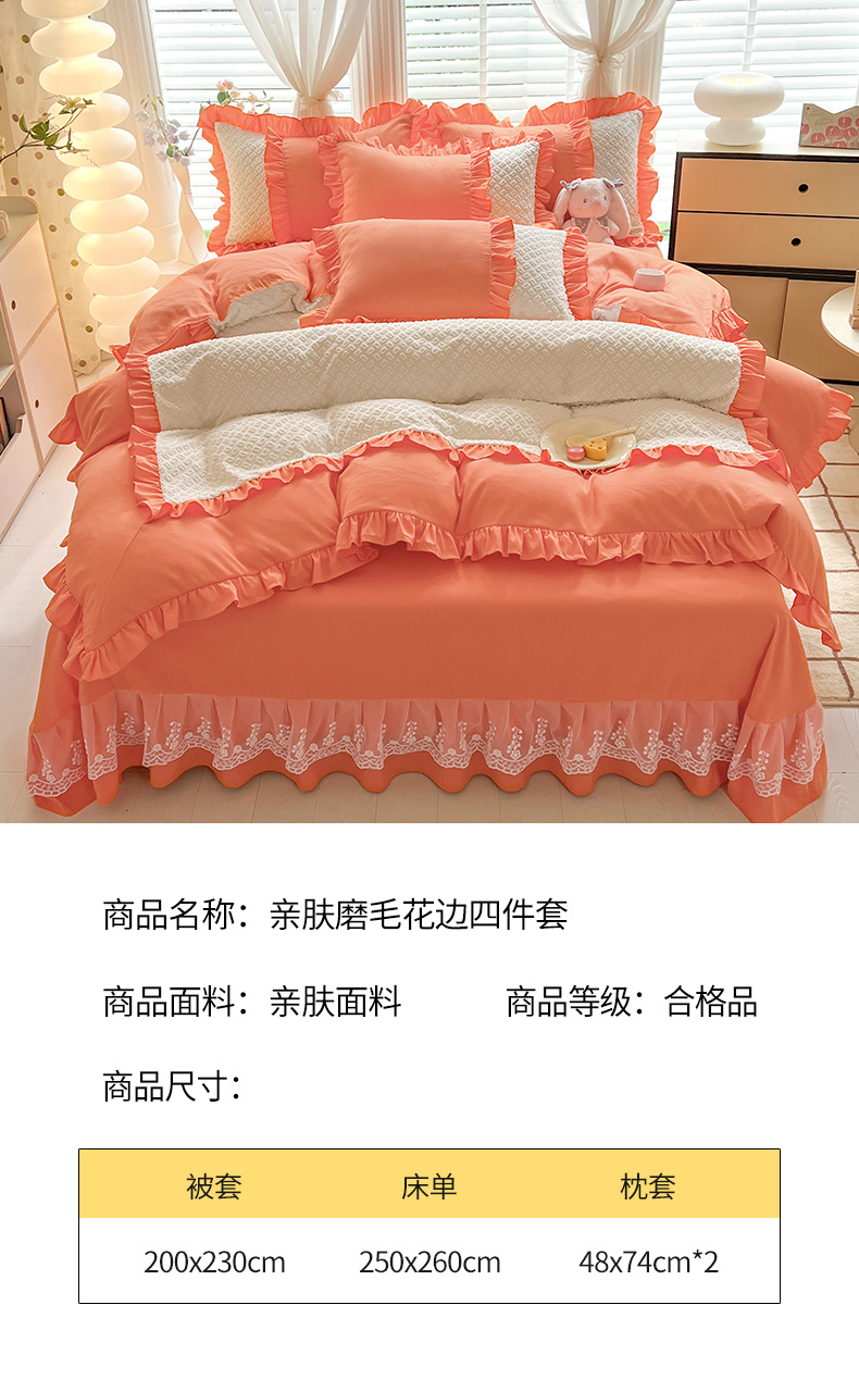 商品名称:芭比蔓家纺 2024新款亲肤磨毛花边四件套---至爱 橙