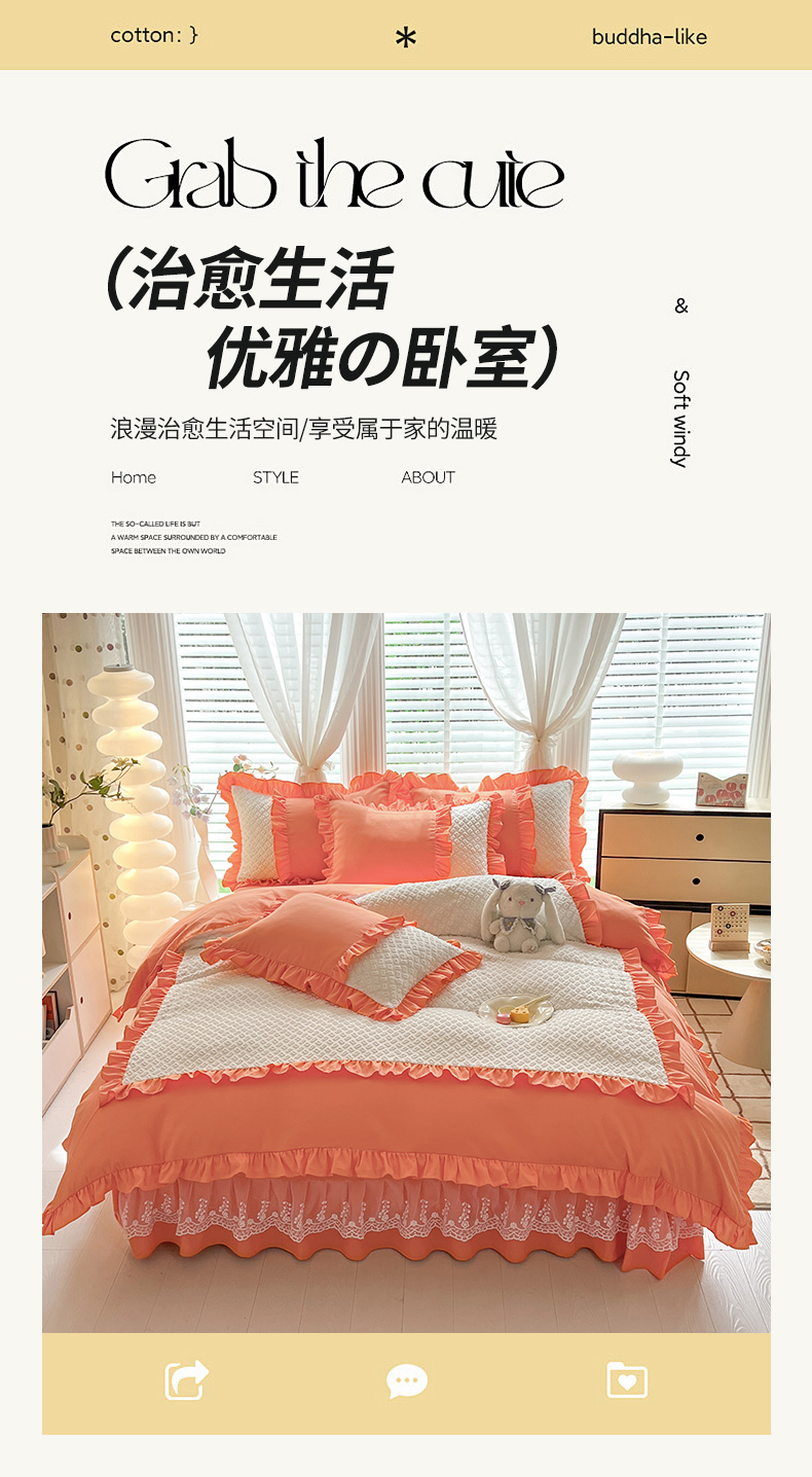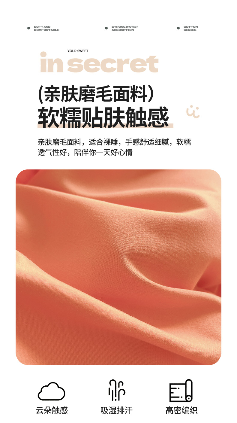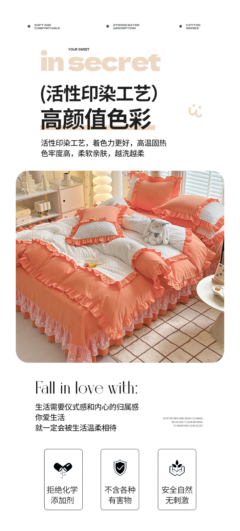 商品名称:芭比蔓家纺 2024新款亲肤磨毛花边四件套---至爱 橙
