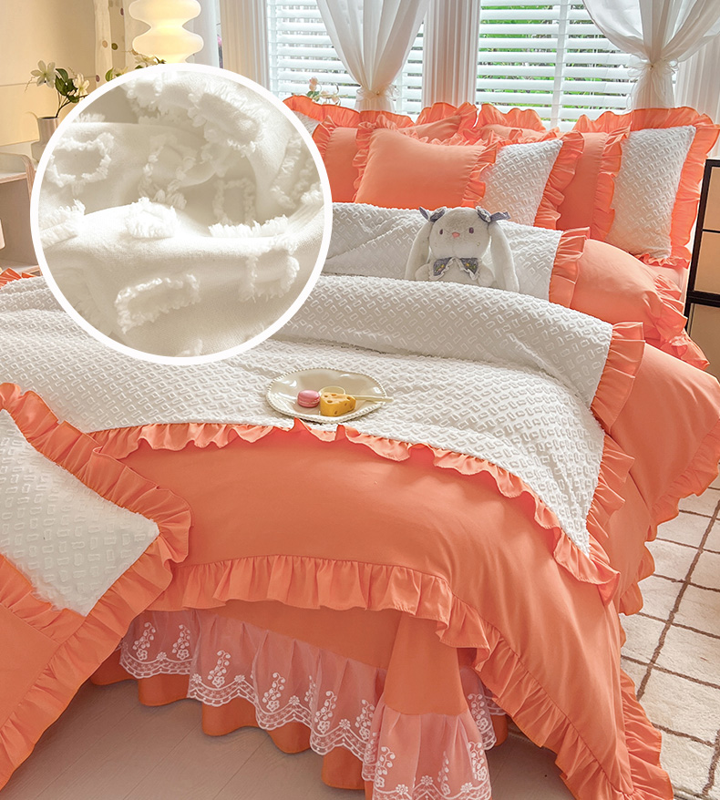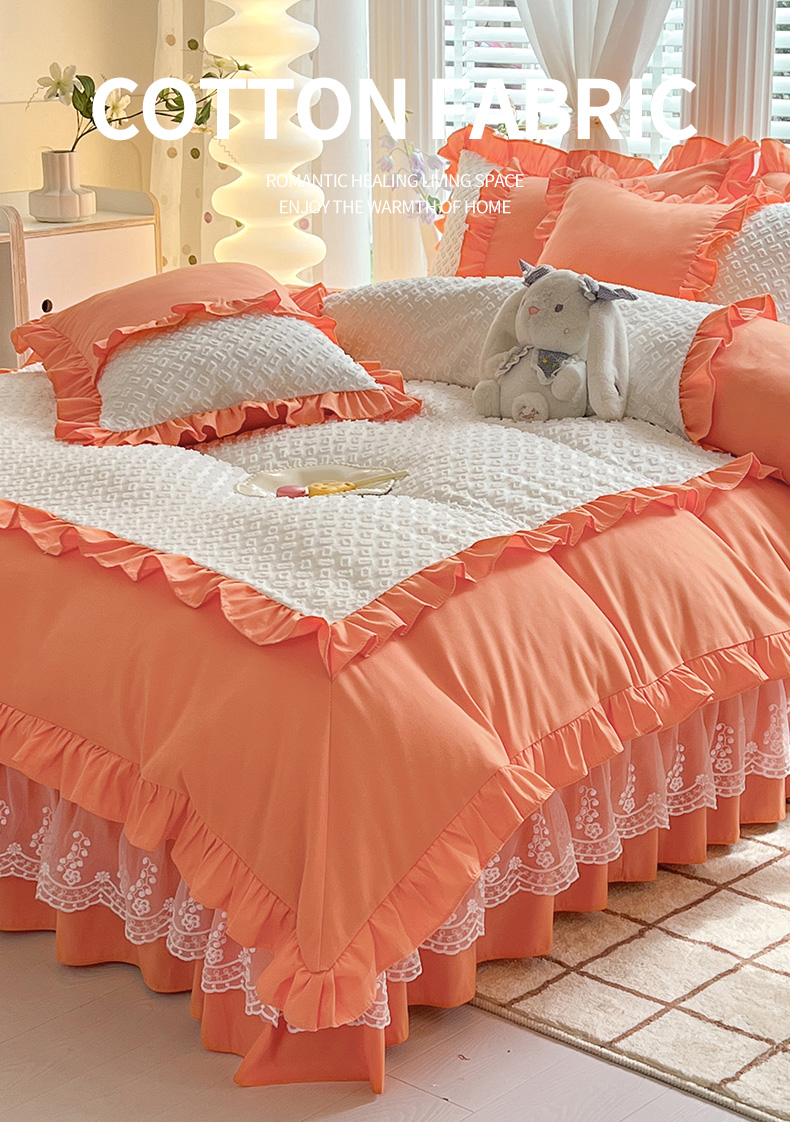 芭比蔓家纺 2024新款亲肤磨毛花边四件套---至爱 橙