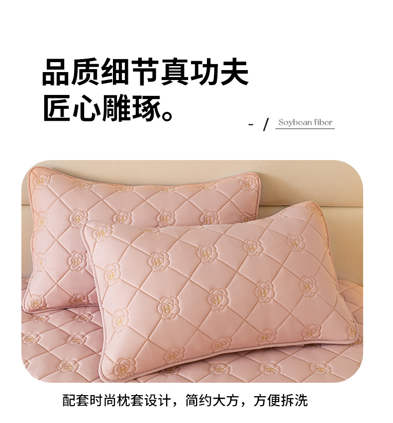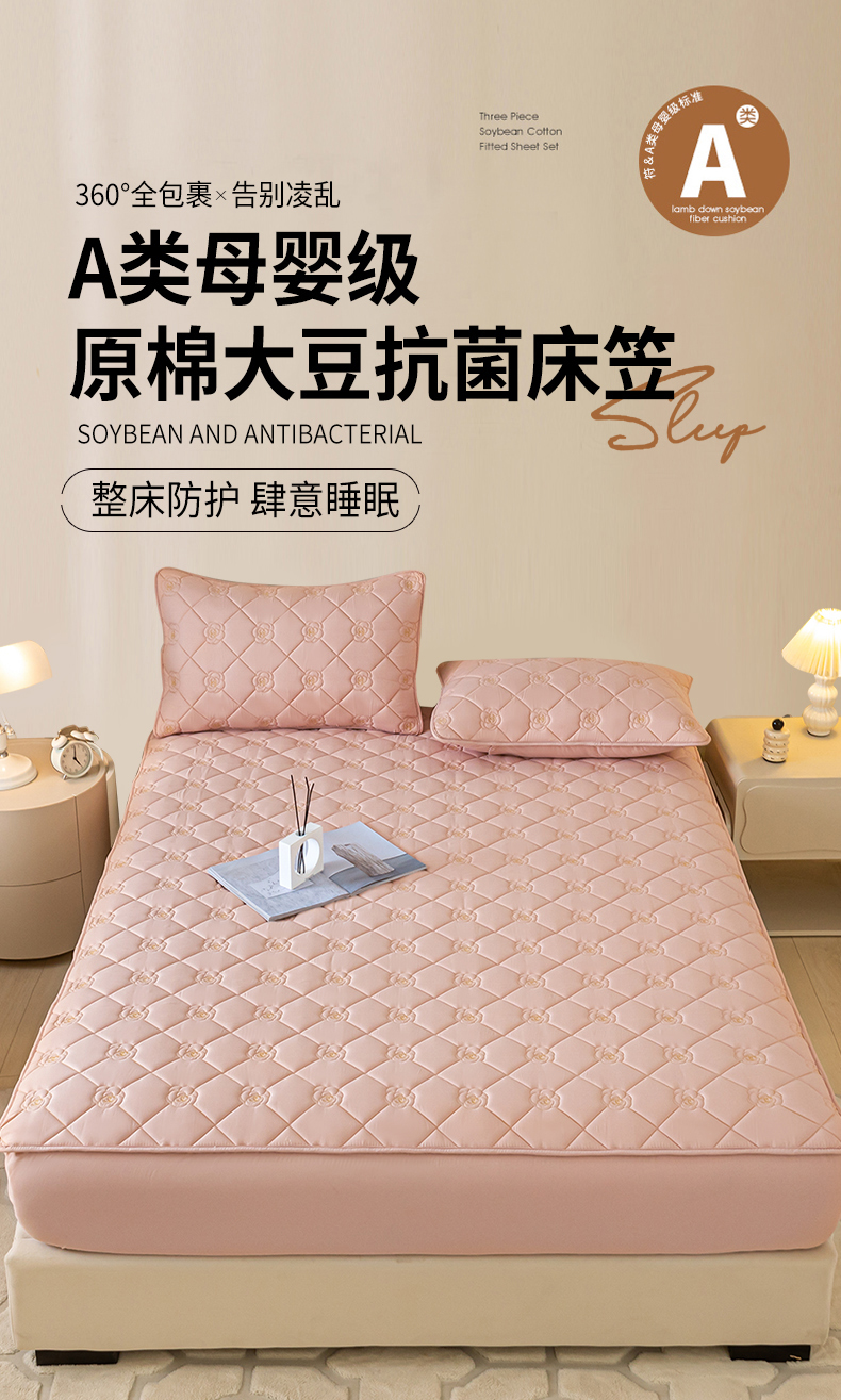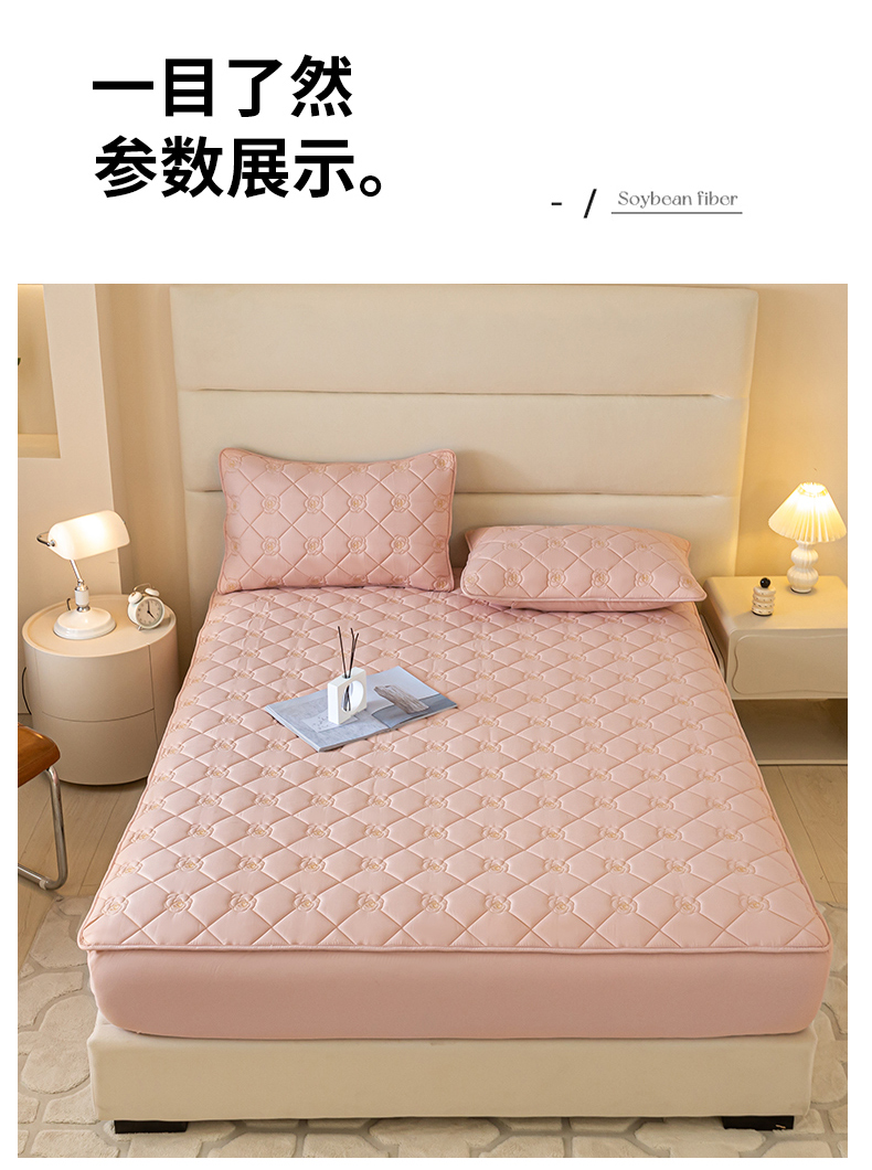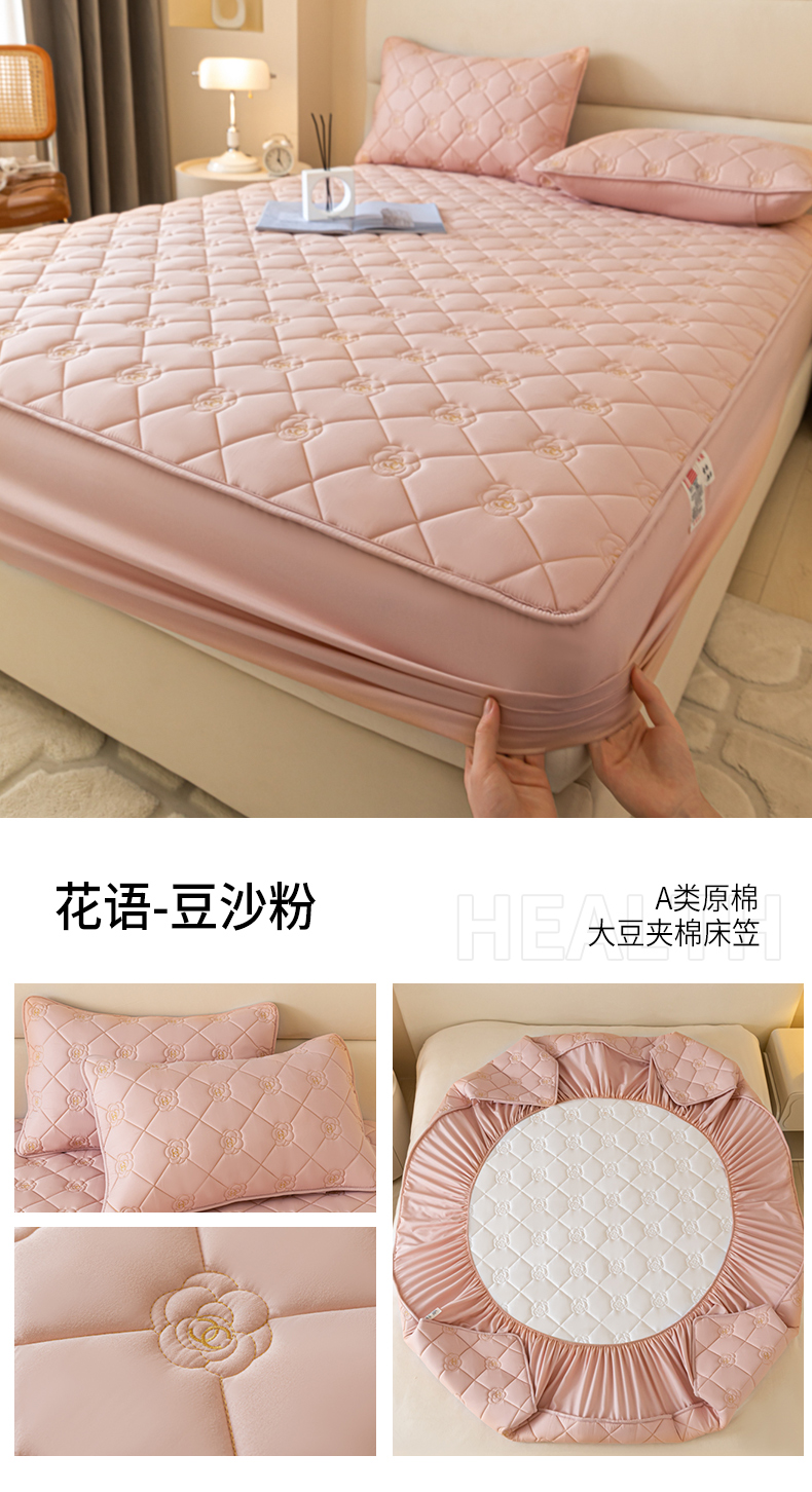 鑫钰 2024新款A类原棉大豆夹棉床笠-花语 花语-豆沙粉