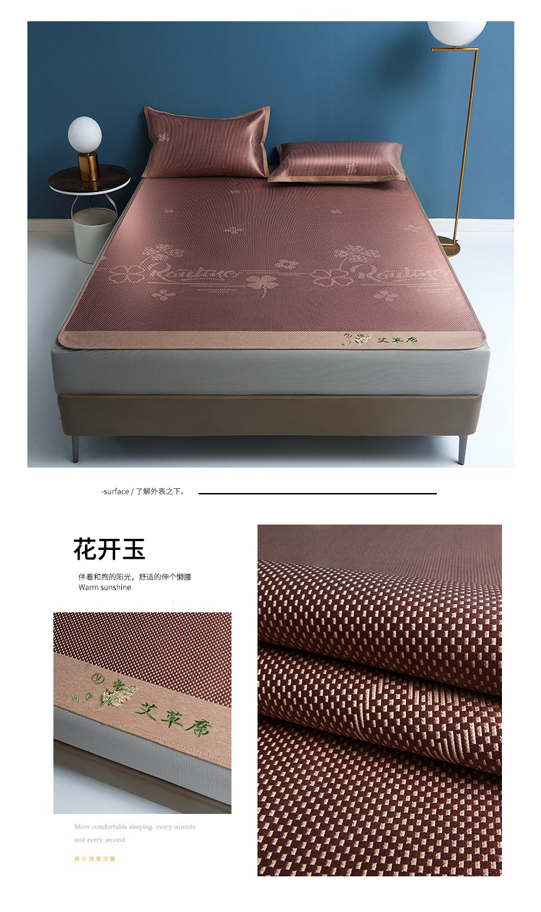 席佬大 2025新款香薰·艾草冰藤席三件套系列 花开玉-床笠款