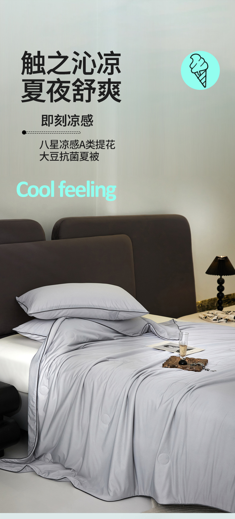 商品名称:头等舱 2025新款八星凉感A类提花大豆抗菌夏被 高级灰