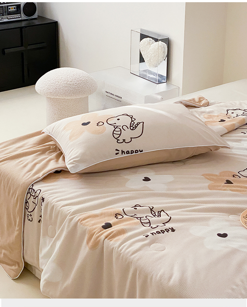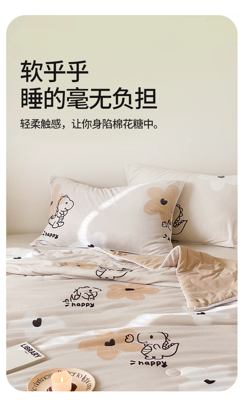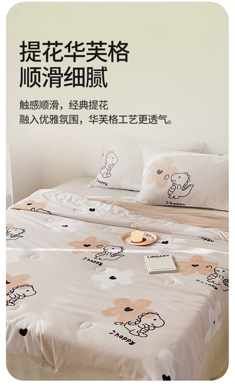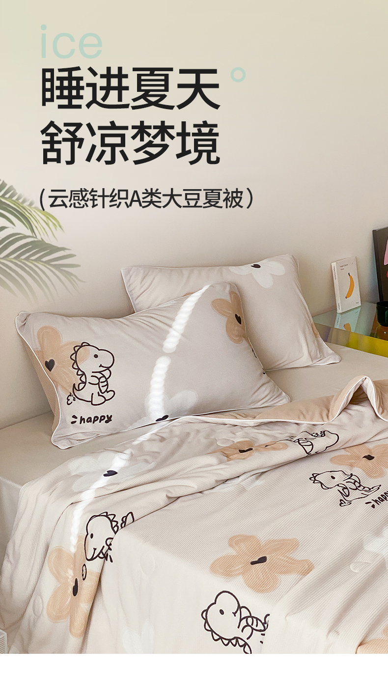 商品名称:头等舱 2025新款云感针织A类提花华夫格印花大豆抗菌夏被 恐龙乐园