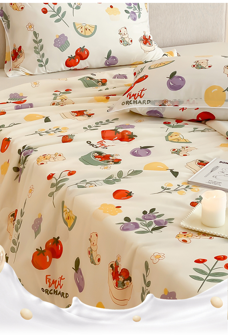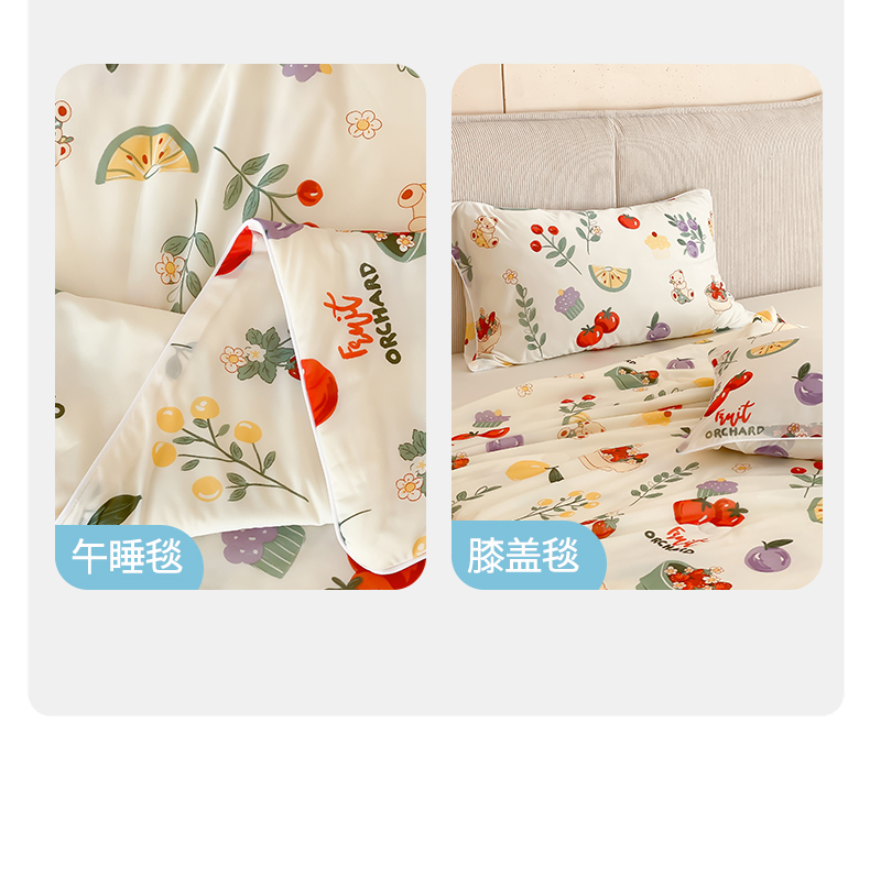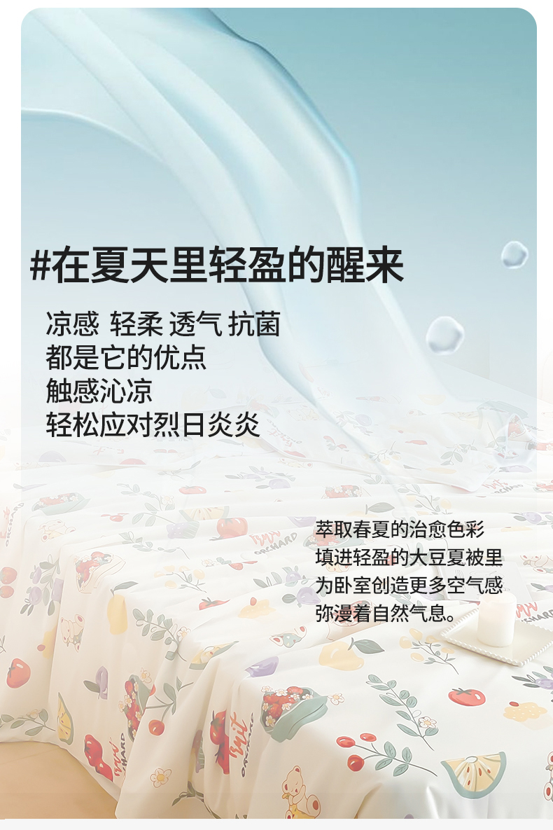 商品名称:头等舱 2025新款针织棉凉感氨纶A类印华大豆抗菌夏被 水果派对