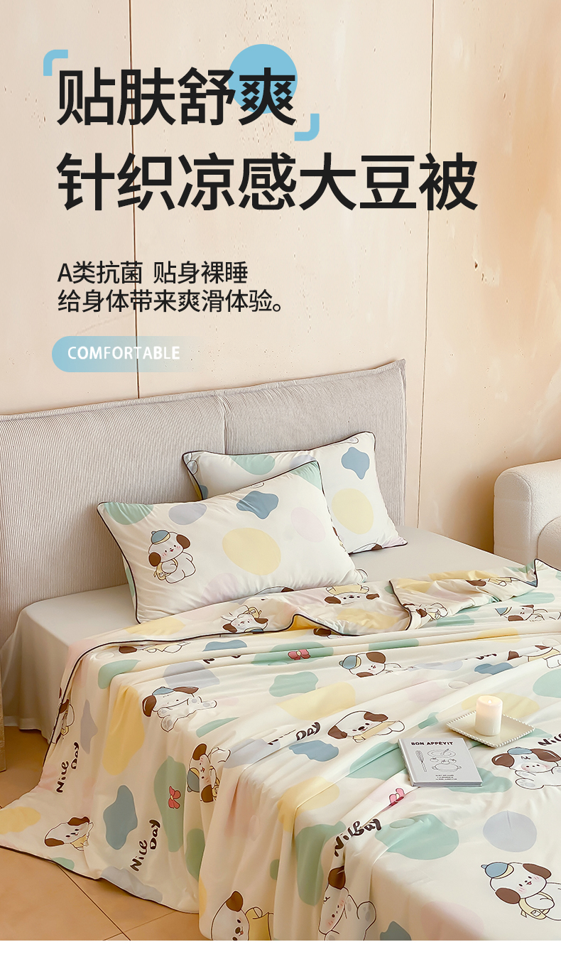 商品名称:头等舱 2025新款针织棉凉感氨纶A类印华大豆抗菌夏被 美好一天
