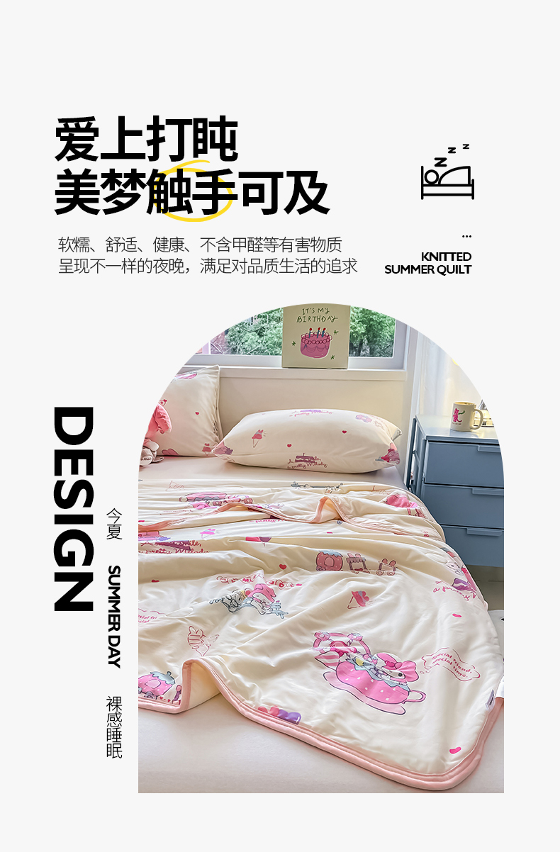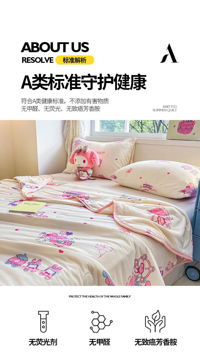当前位置: 91家纺网 > 商品网购 > 被子 > 普通夏被 > 桃子家居 2024新款A类三丽鸥正版授权高品质牛奶丝软糯针织棉夏被系列 针织棉三丽鸥-游乐园美乐蒂