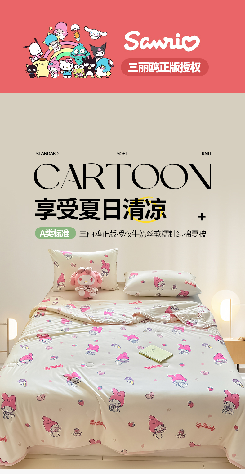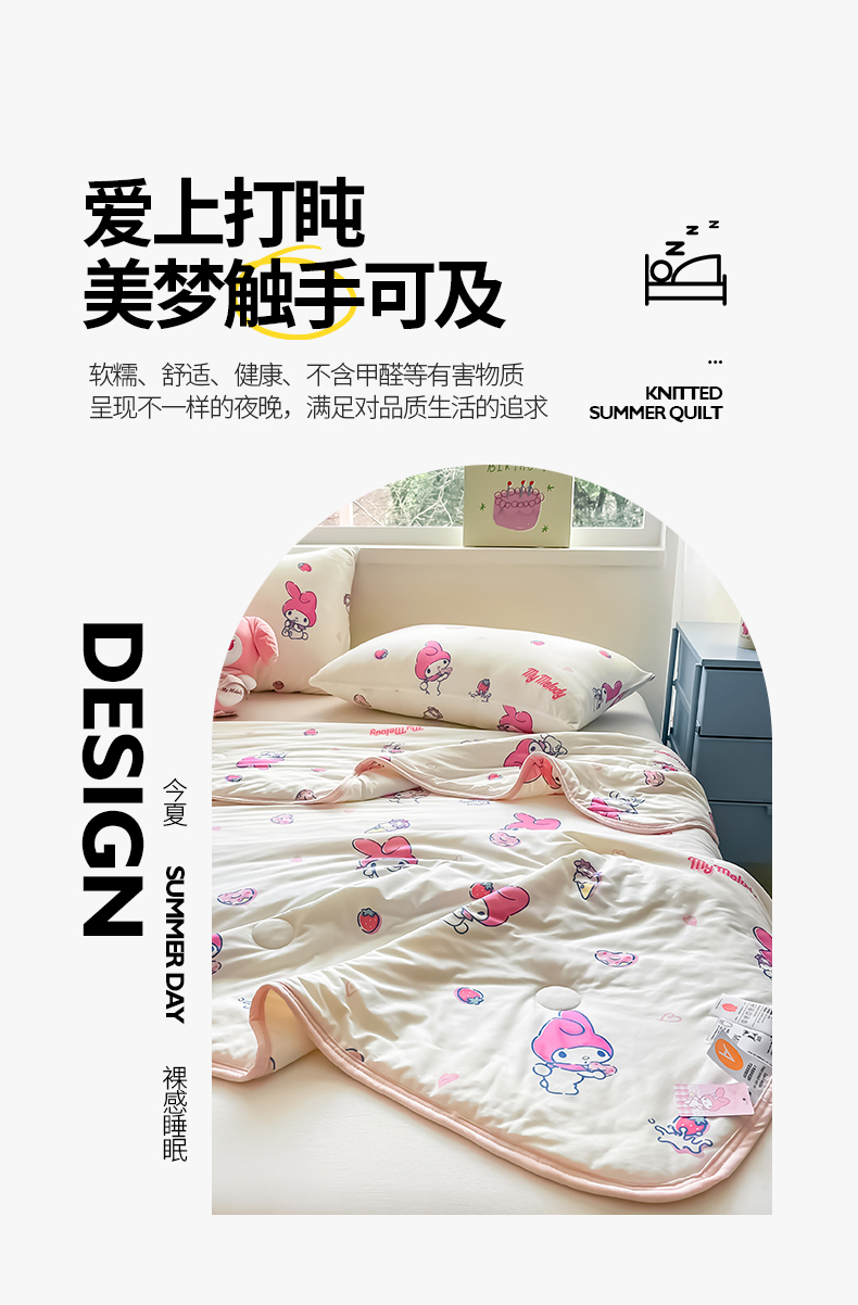 • 91家纺网 家纺一手货源 找家纺 桃子家居 2024新款A类三丽鸥正版授权高品质牛奶丝软糯针织棉夏被系列 针织棉三丽鸥-草莓甜筒美乐蒂