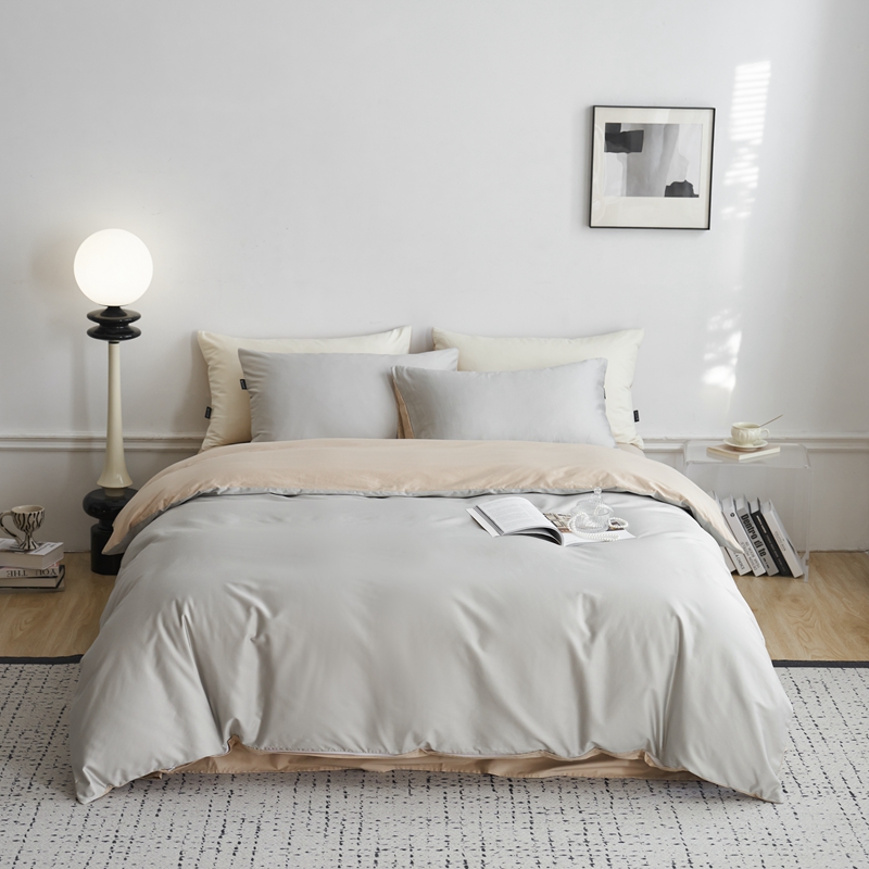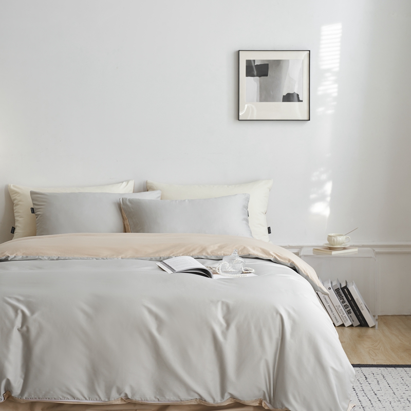 商品名称:安莱生活 2024新款100s长绒棉贡缎双拼四件套 高级灰-棕灰
