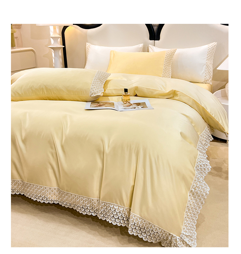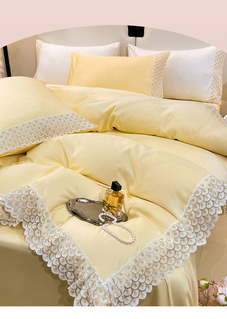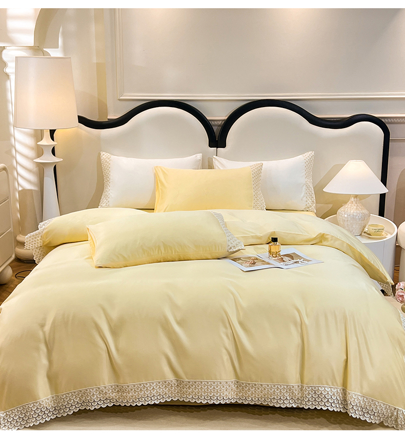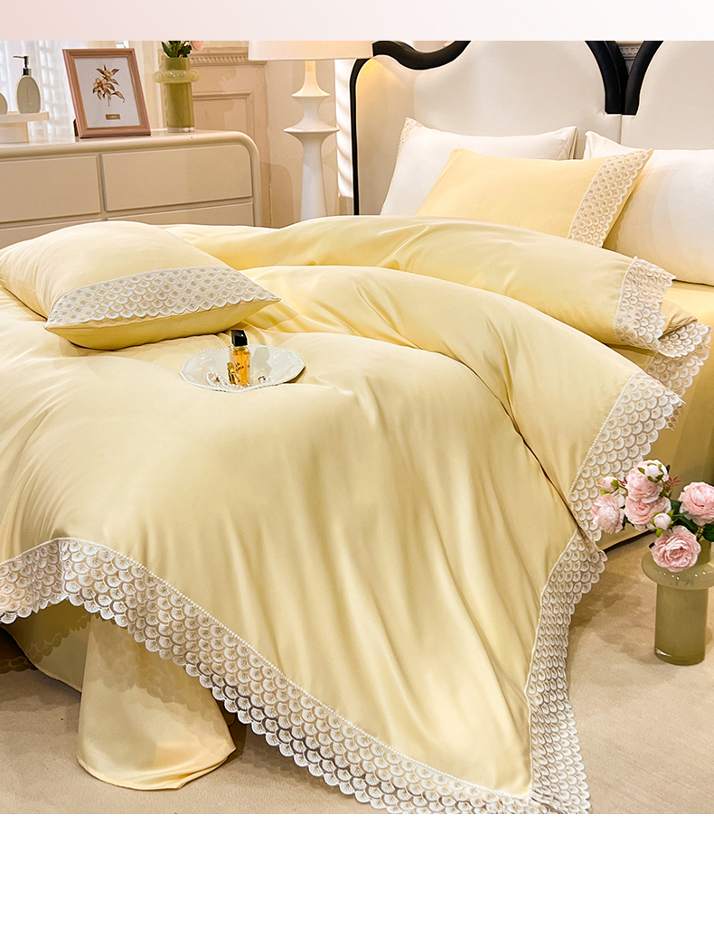 (总)艾米家居 2025新款水洗真丝贝壳边系列四件套,白,白+粉,豆沙,豆沙+蓝,黄,黄+橘色,灰色,蓝+黄,浅粉,水绿,天蓝
