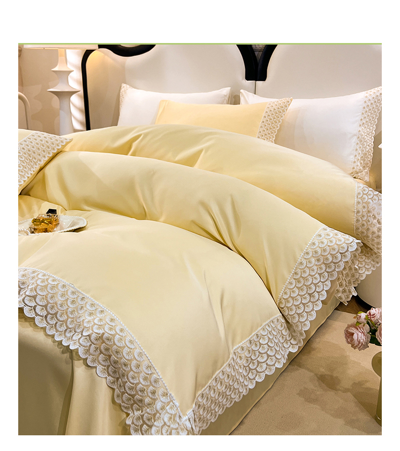 艾米家居 2025新款韩版双层花边轻奢浮雕系列水洗冰丝四件套 豆沙花边,豆沙花边