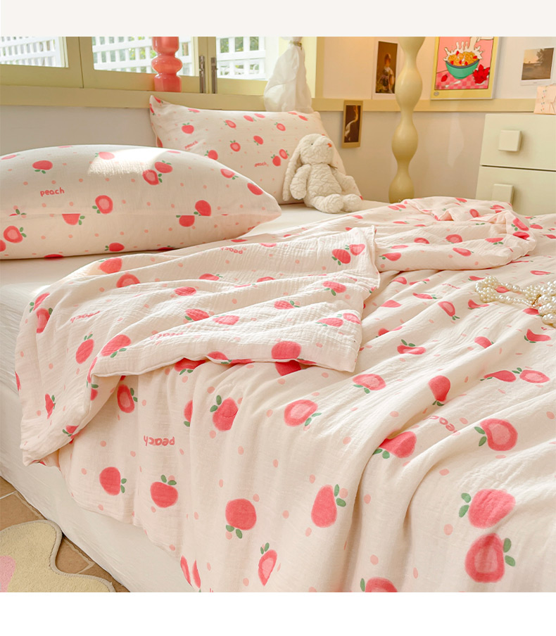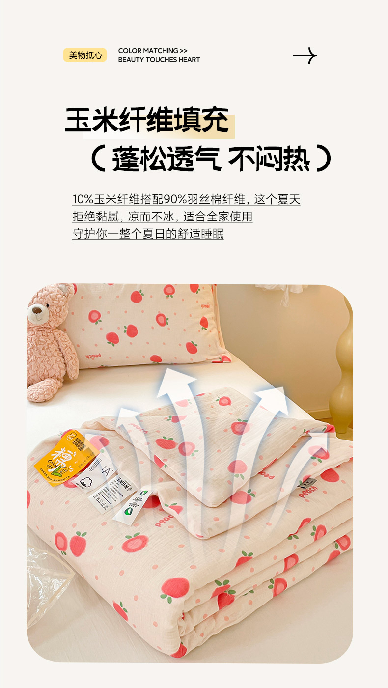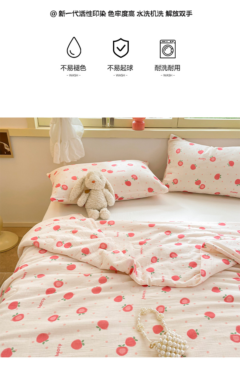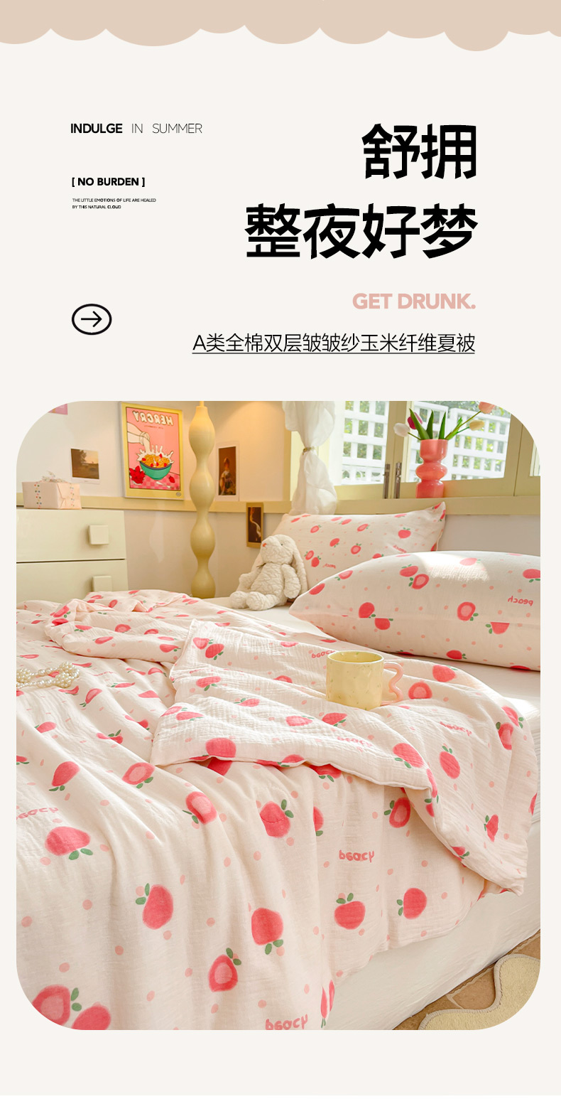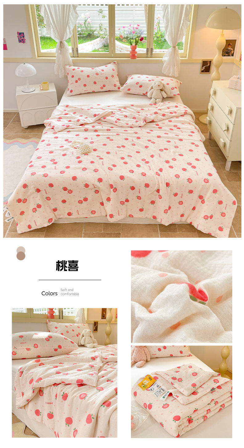 商品名称:莱登卡奴 24新款A类母婴级全棉双层皱皱纱玉米纤维夏被 桃喜