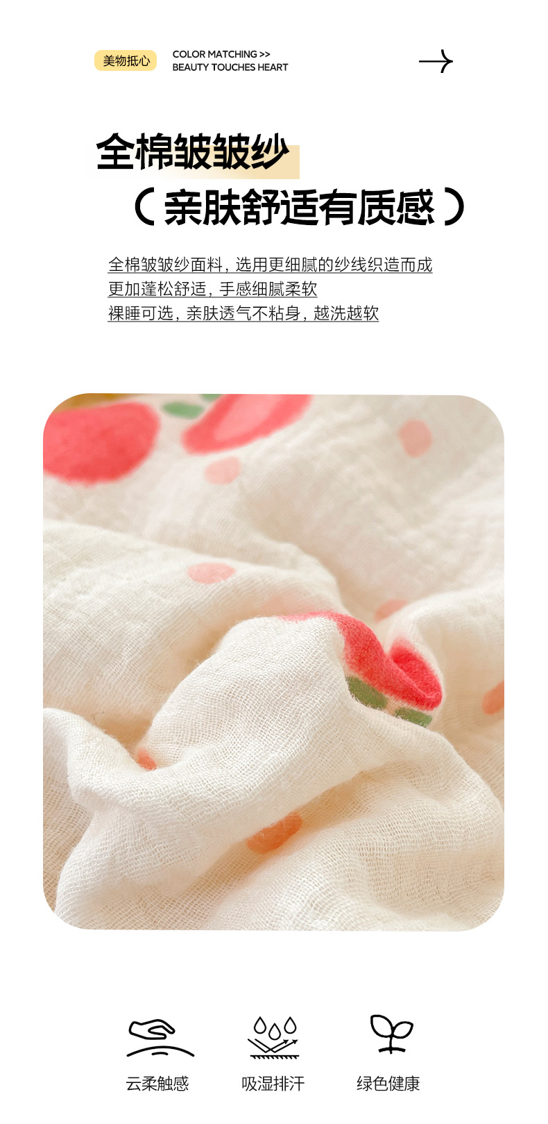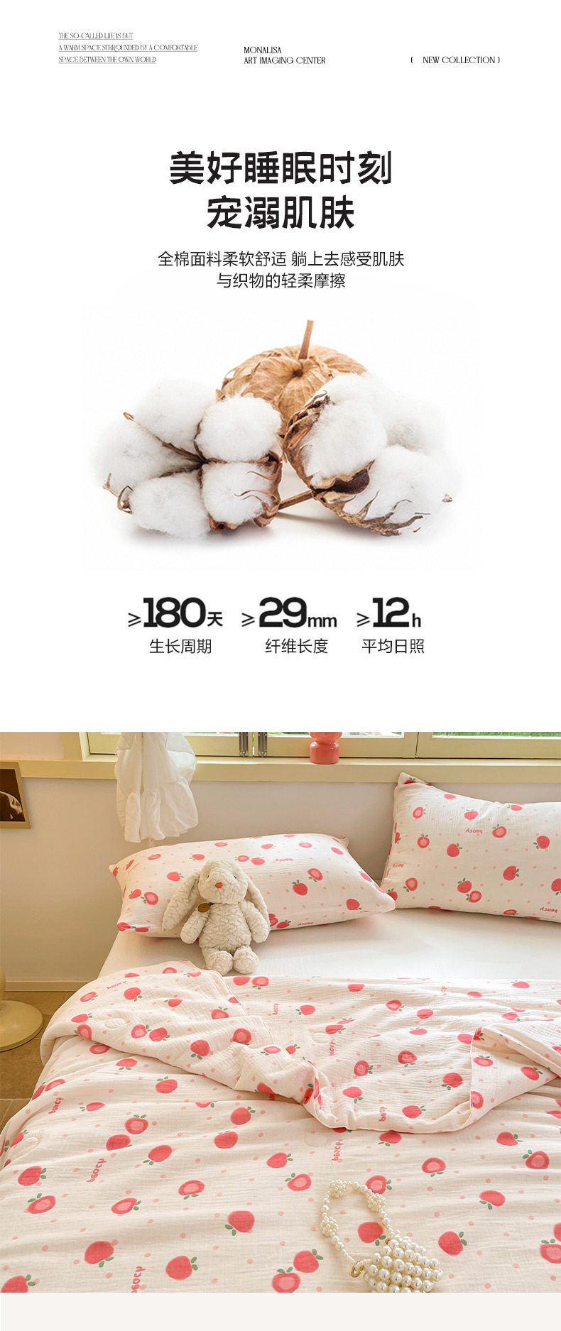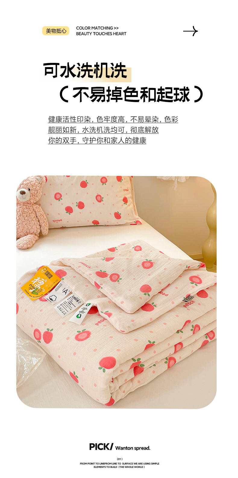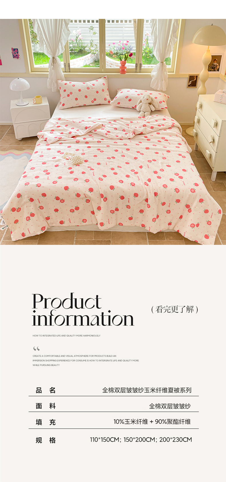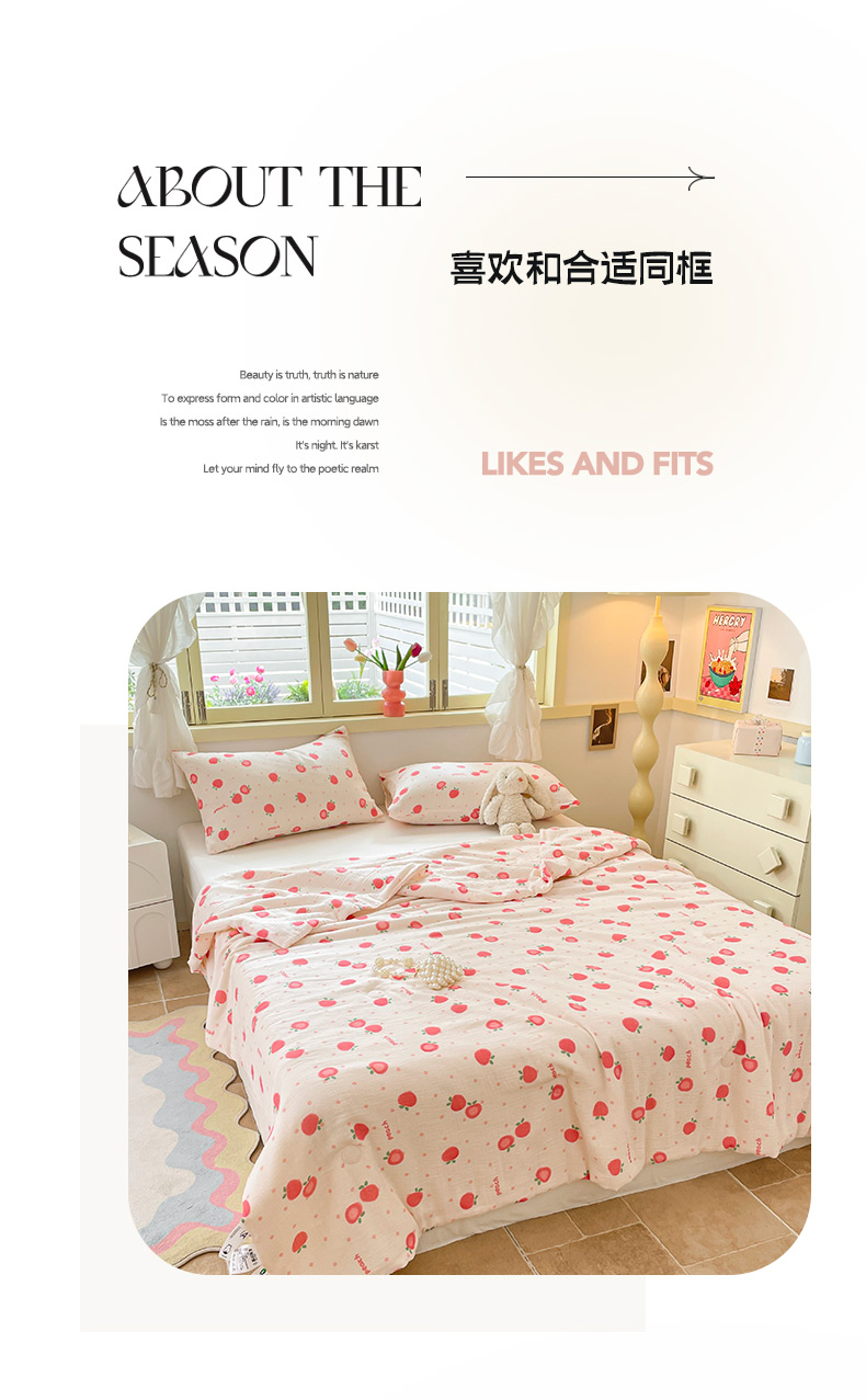 商品名称:莱登卡奴 24新款A类母婴级全棉双层皱皱纱玉米纤维夏被 桃喜