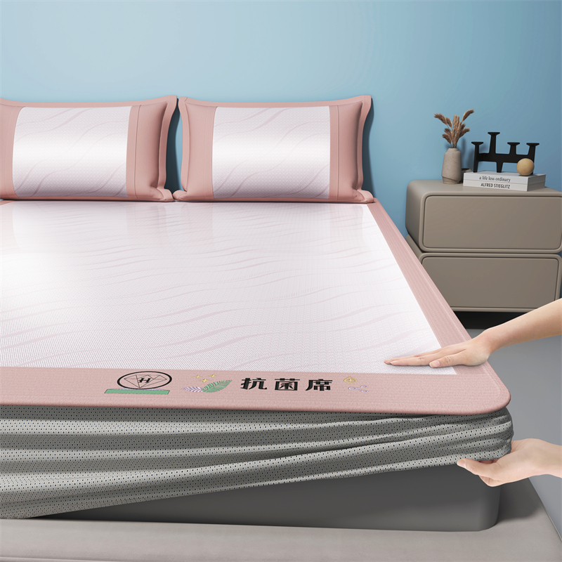 • 91家纺网 家纺一手货源 找家纺 yyds网供 2024新款艾草抗菌冰丝席软席碳光席三件套  艾草抗菌冰丝-粉【床笠款】