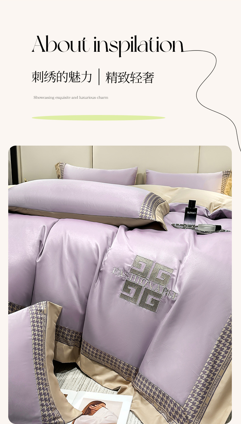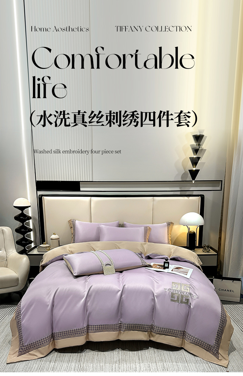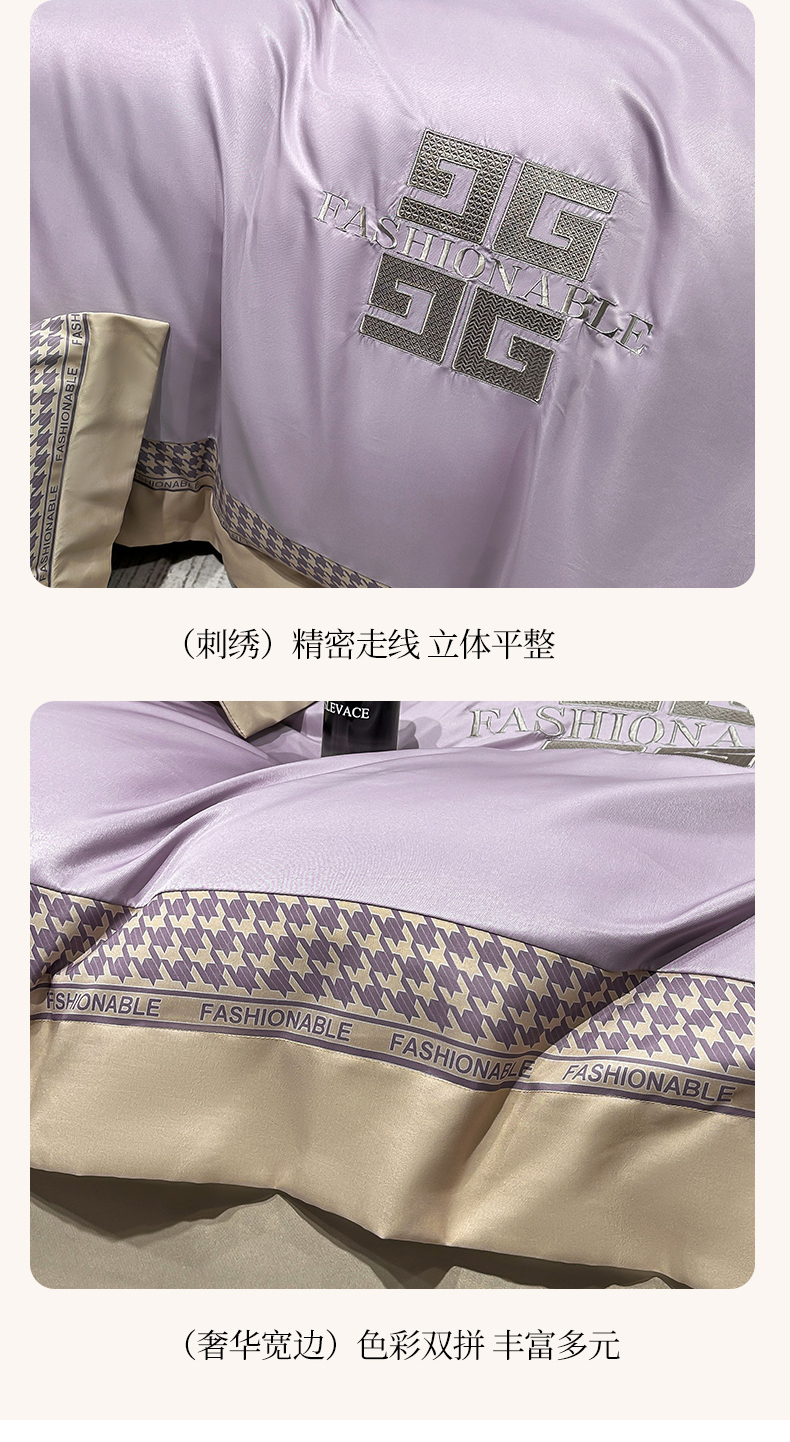 富盛家纺 2024新款水洗真丝刺绣四件套-威灵顿 威灵顿—紫色