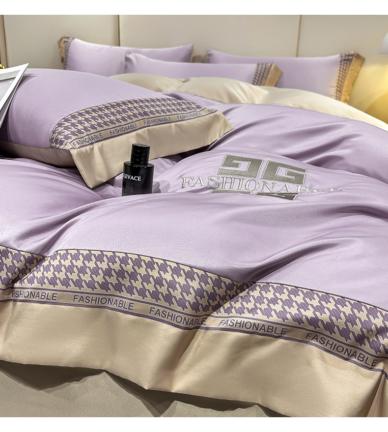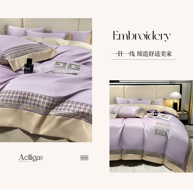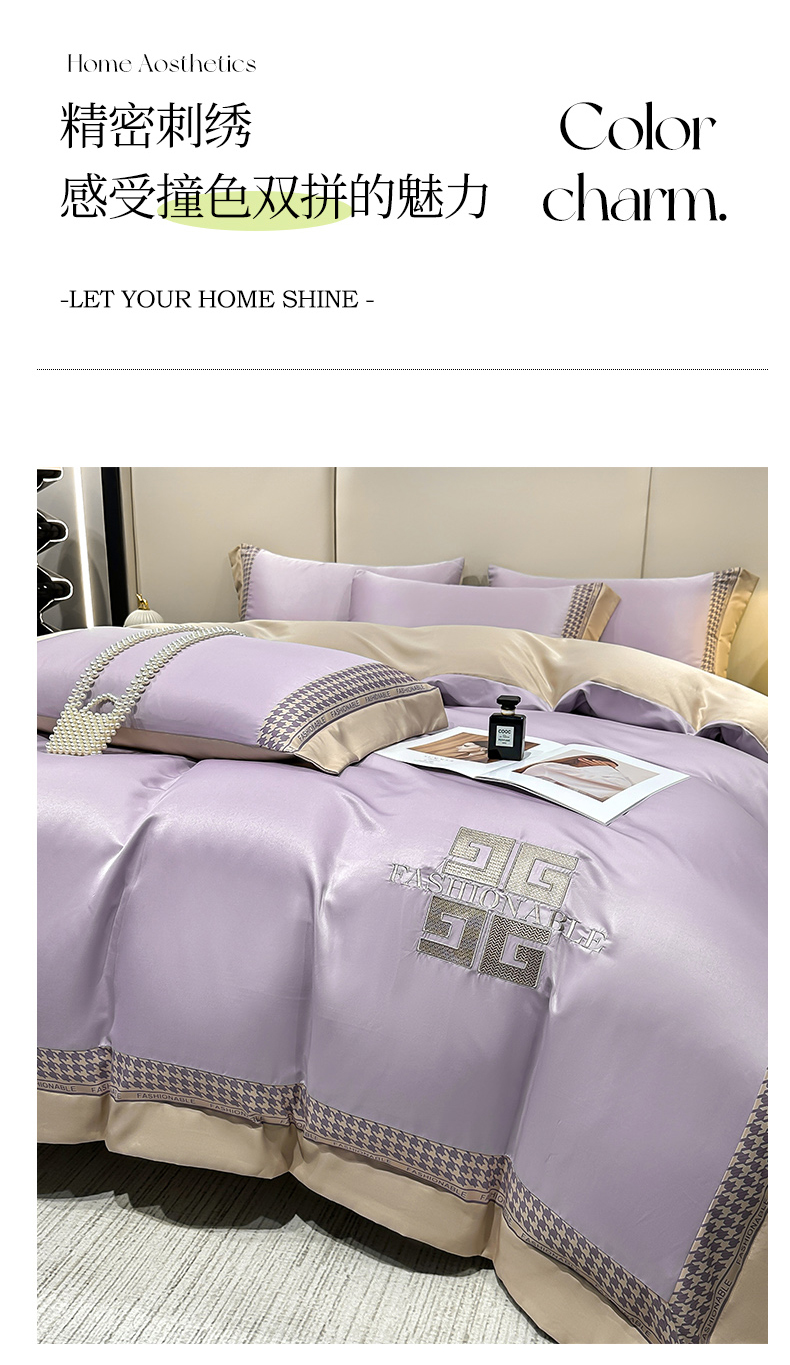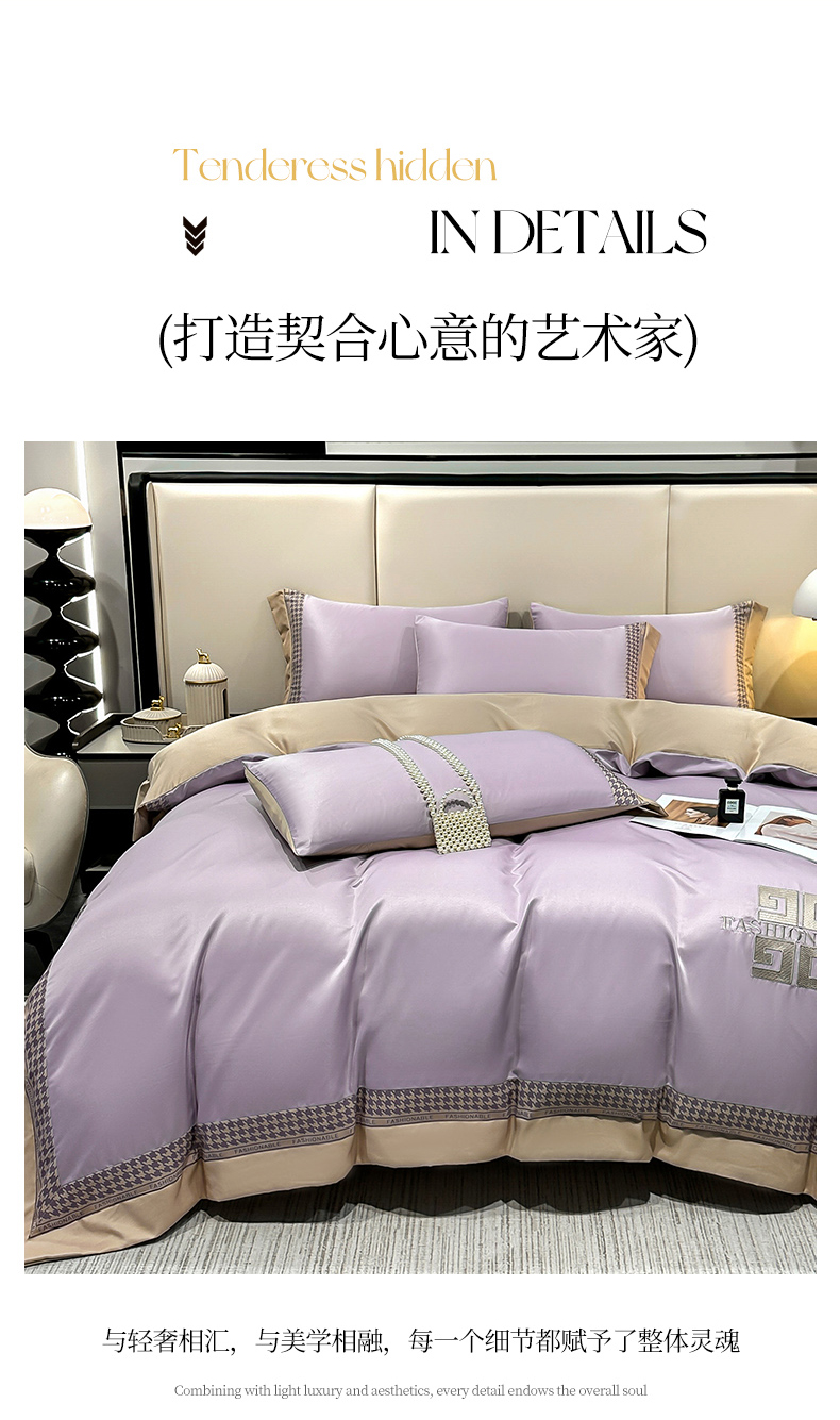 富盛家纺 2024新款水洗真丝刺绣四件套-威灵顿 威灵顿—紫色