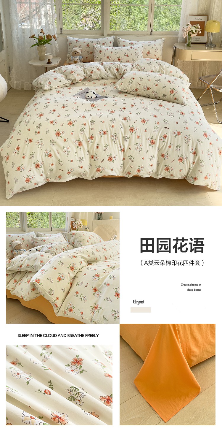 当前位置: 91家纺网 > 商品网购 > 床品套件 > 四件套 > 其它四件套 > 乐萱家纺 2024新款水洗云朵棉小清新四件套超柔印花单被套 田园花语