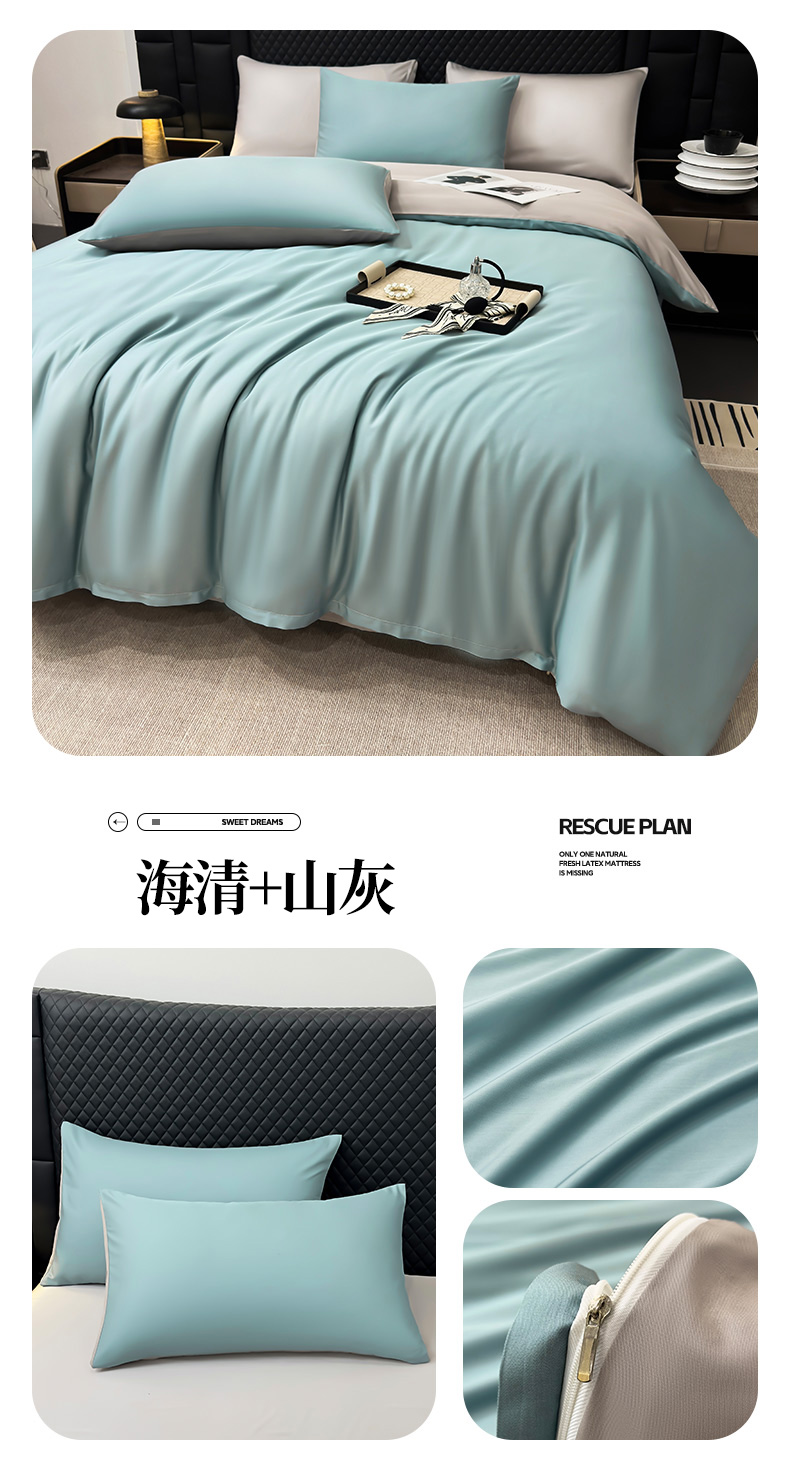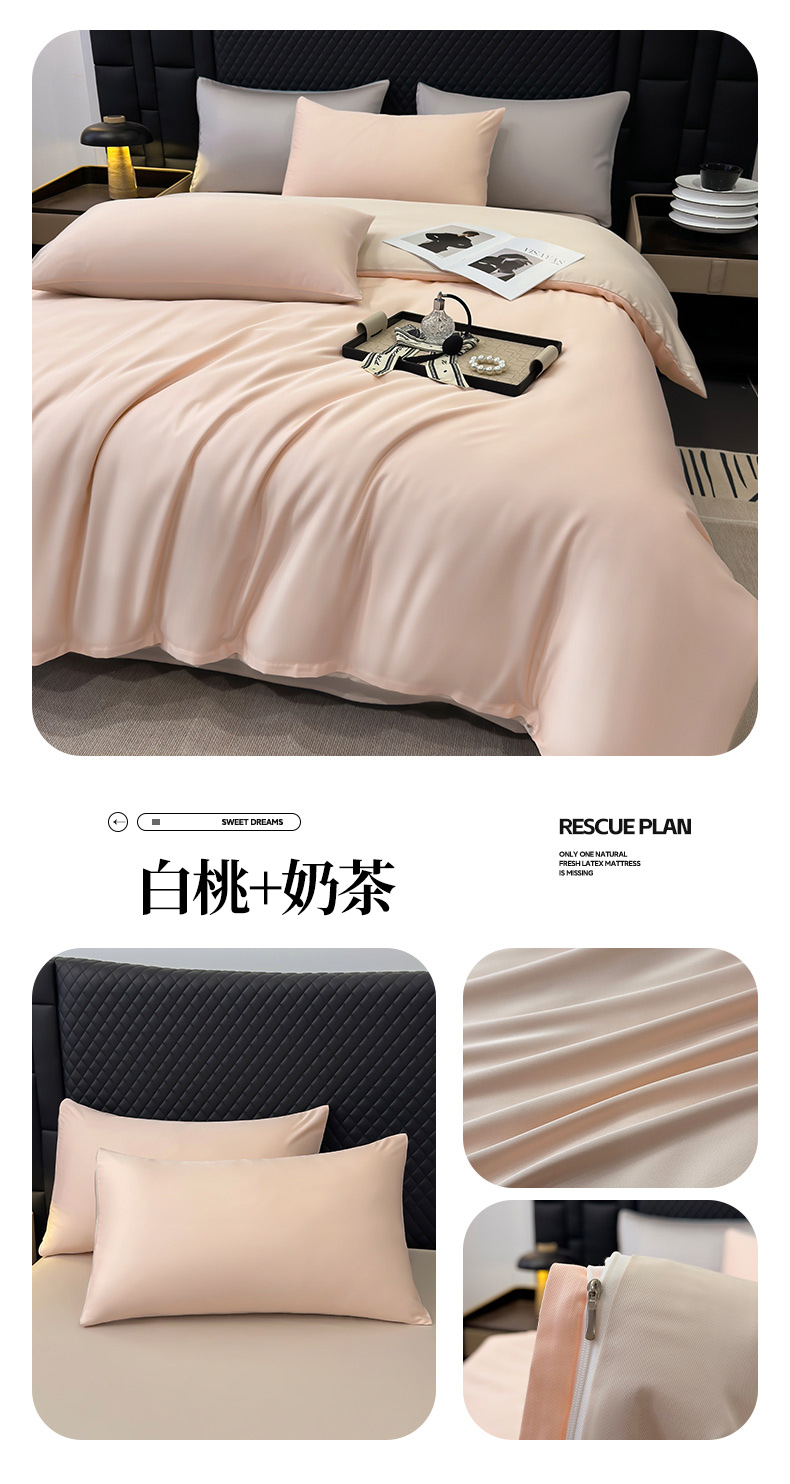 (总)鸿织源家纺2025新款直播爆款A类轻奢60S莱赛尔天丝四件套真丝四件套礼盒装,奶油粉+浅紫,山灰,本白+银灰,海清+山灰,清新绿,白桃+奶茶,芥末绿+米黄,豆蔻粉