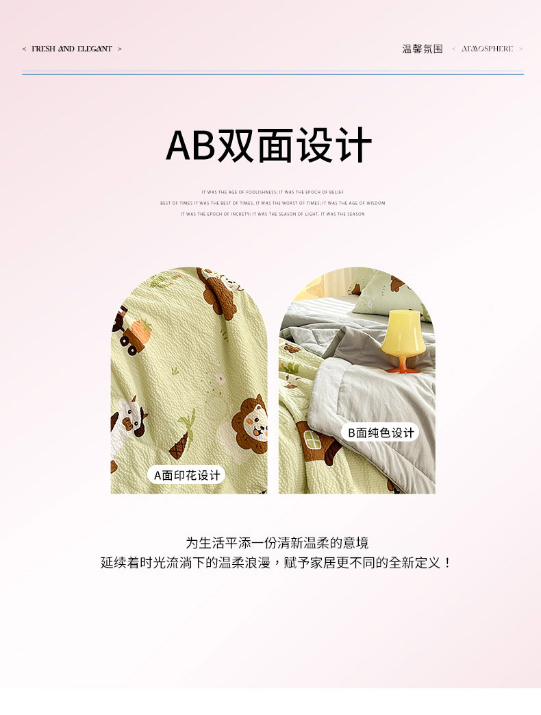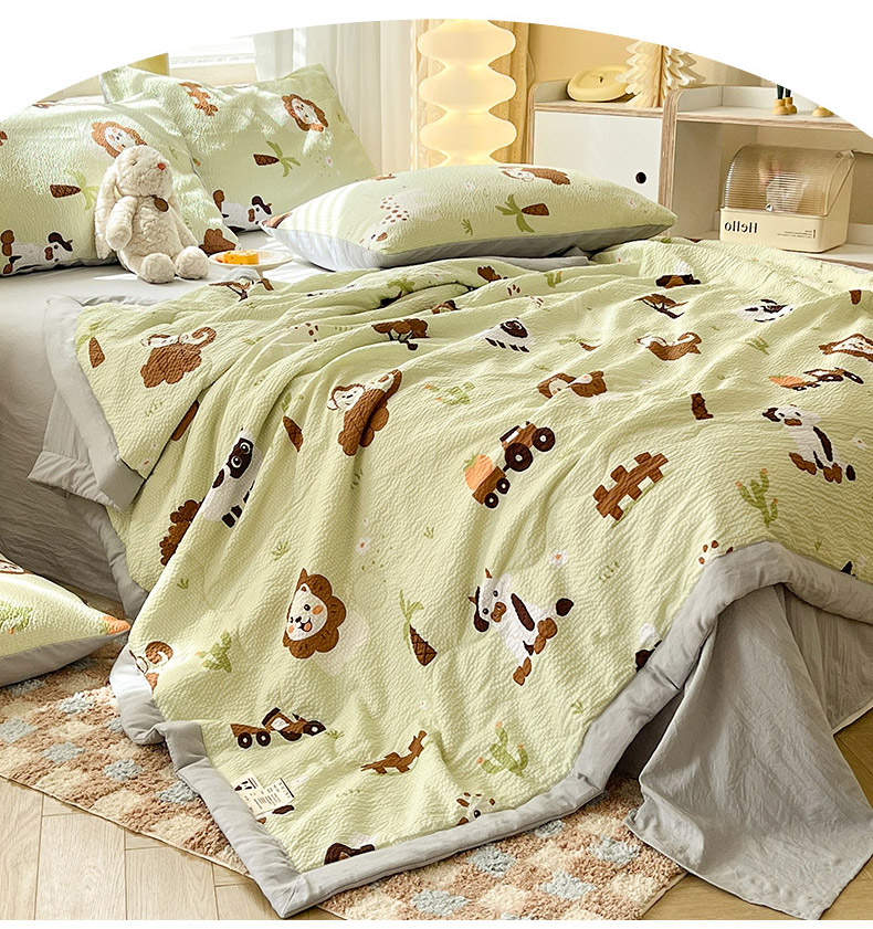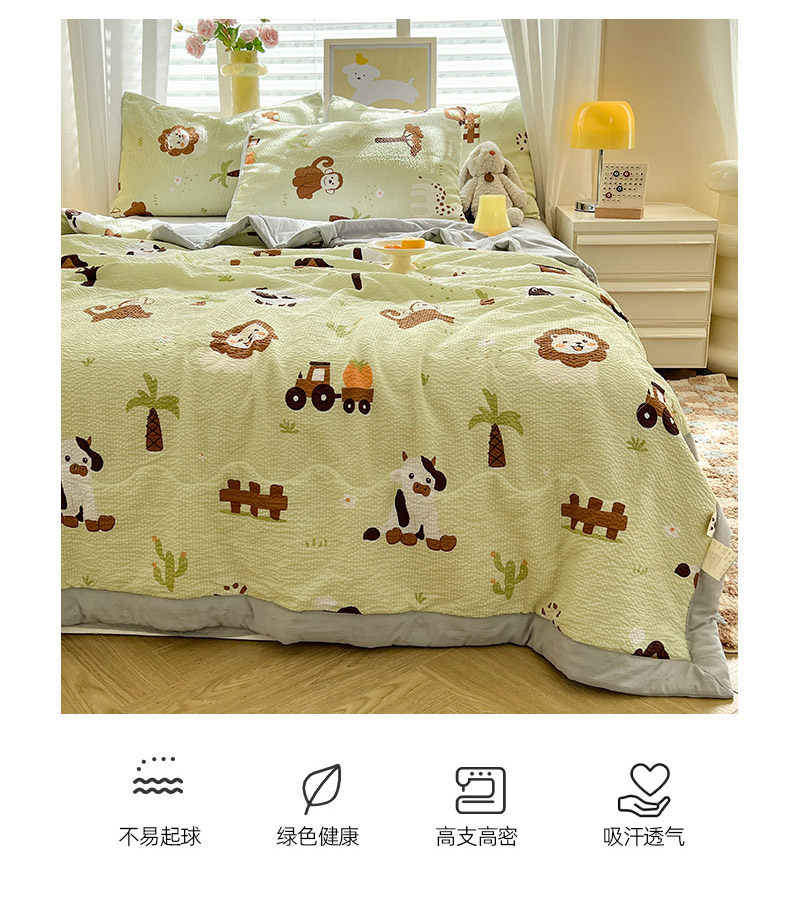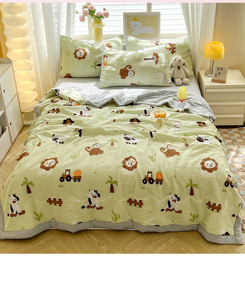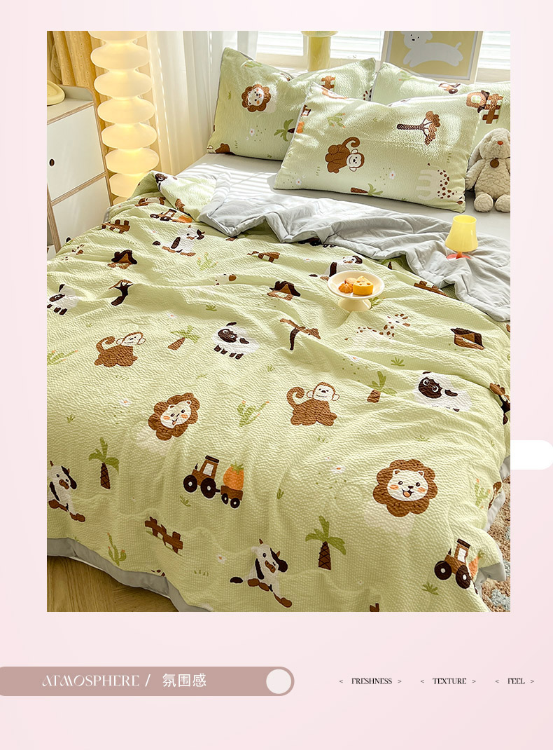 妖妖家纺 2024新款有氧水洗泡泡棉印花四套泡芙棉夏被四件套 动物园记