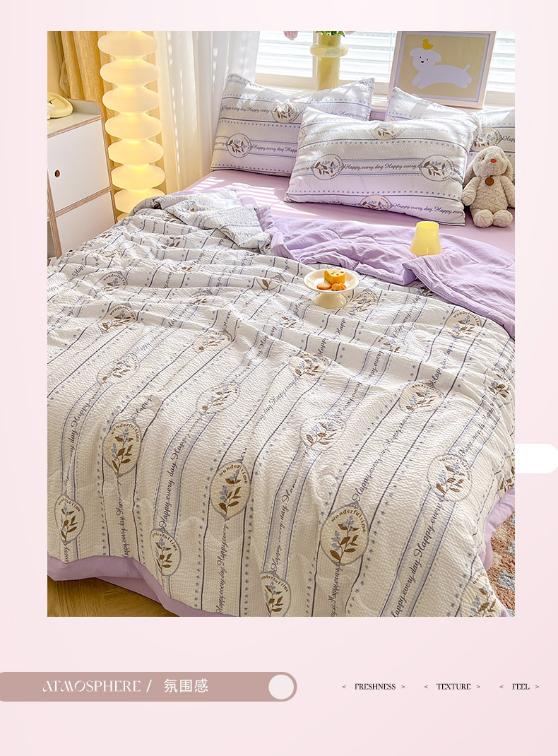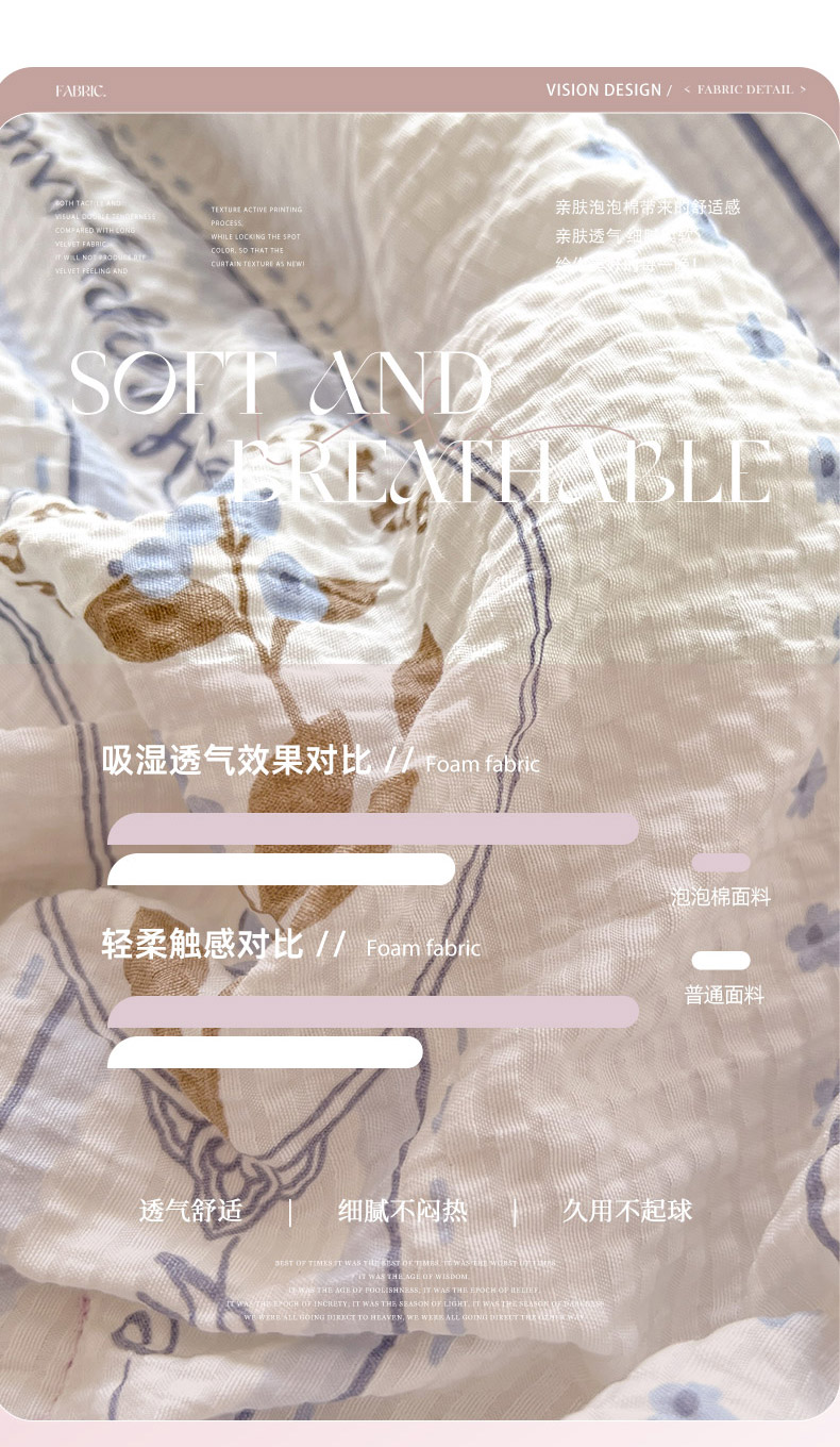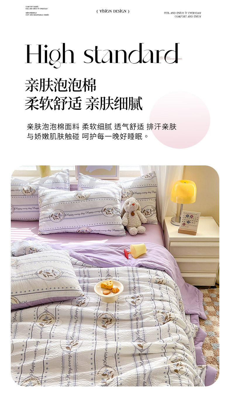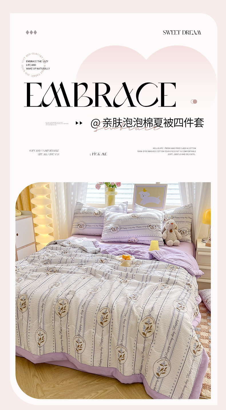 妖妖家纺 2024新款有氧水洗泡泡棉印花四套泡芙棉夏被四件套 蓝色莓莓