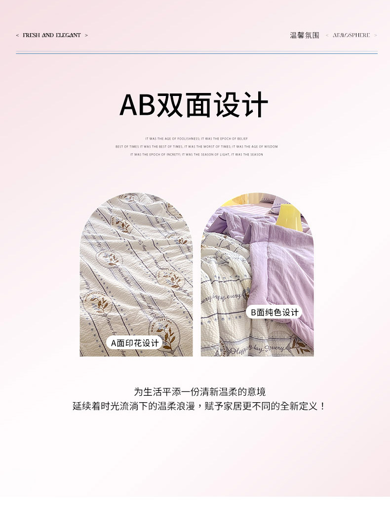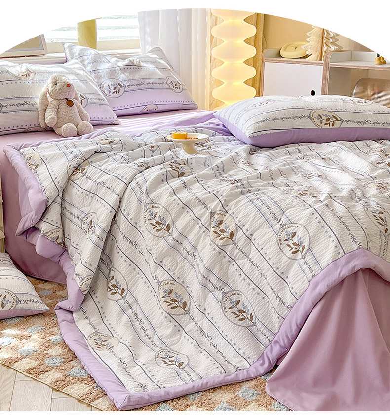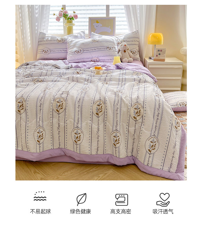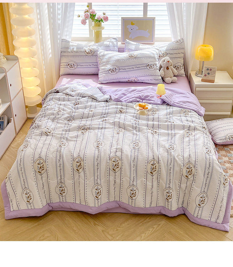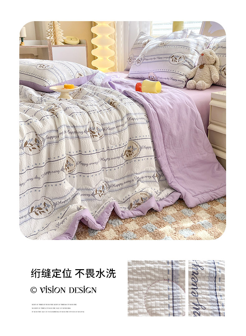 妖妖家纺 2024新款有氧水洗泡泡棉印花四套泡芙棉夏被四件套 蓝色莓莓
