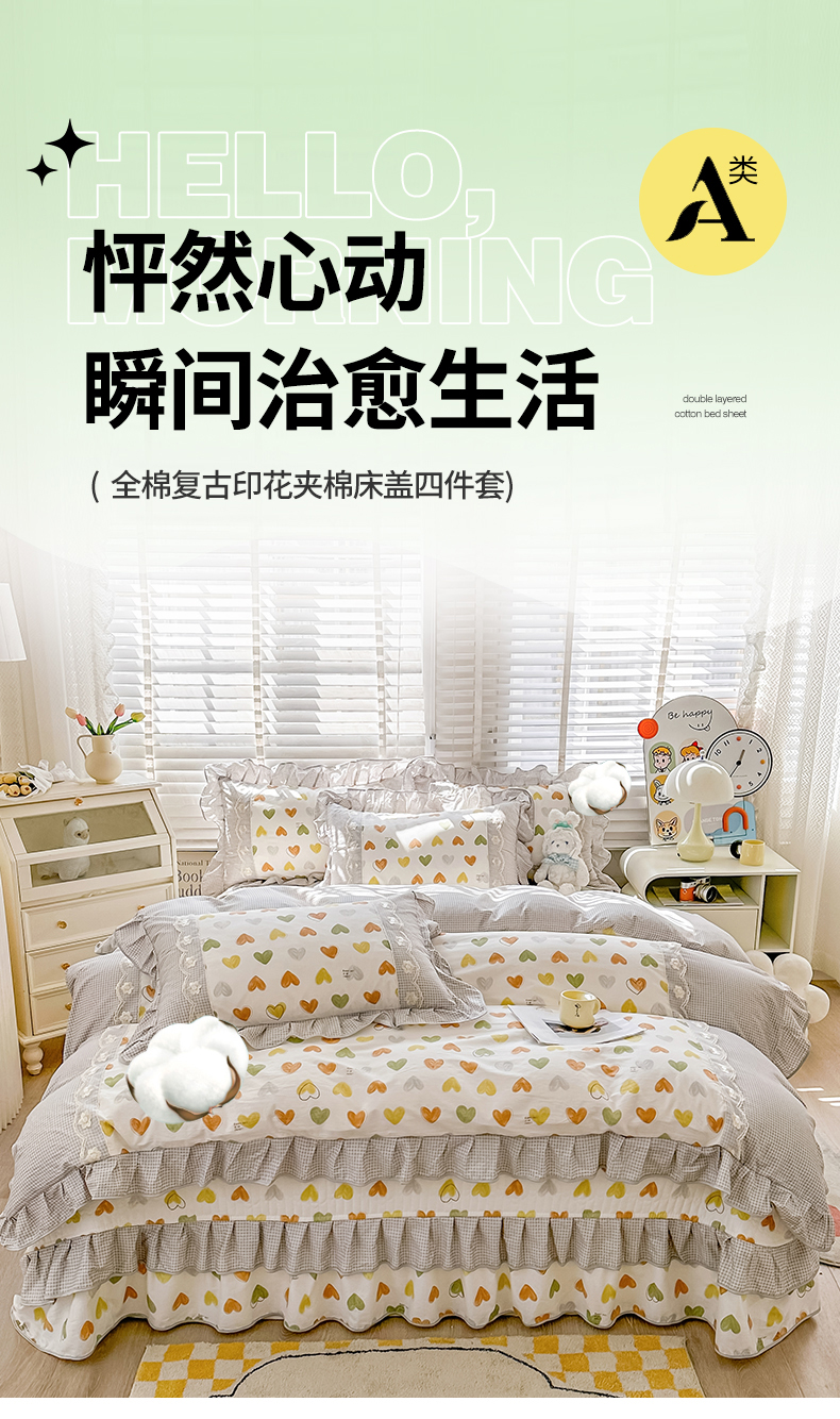 当前位置: 91家纺网 > 商品网购 > 床品套件 > 四件套 > 全棉普通四件套 > 宜凡家纺 2024新款全棉复古印花床盖四件套 甜蜜生活