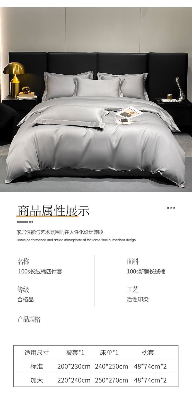 商品名称:富之航家纺 2024新款长绒棉四件套 雅克-典雅灰
