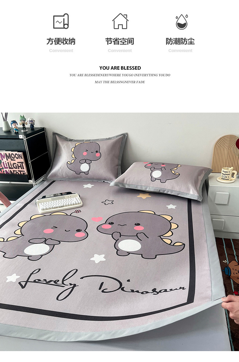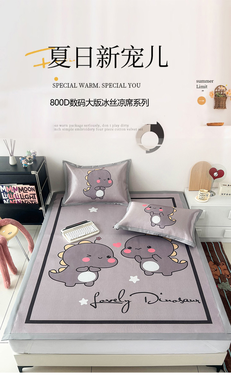 商品名称:倾慕 2024新款A类800D数码印花大版冰丝席凉席 对对龙