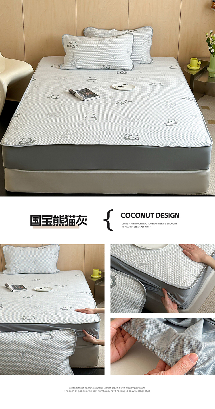 顾里家纺 新款冰豆豆立体提花软席床笠款 国宝熊猫灰