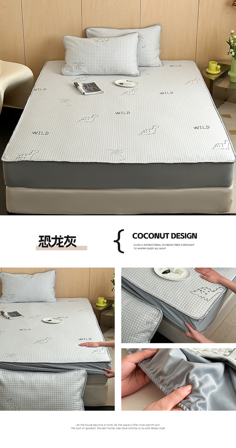 顾里家纺 新款冰豆豆立体提花软席床笠款 恐龙灰