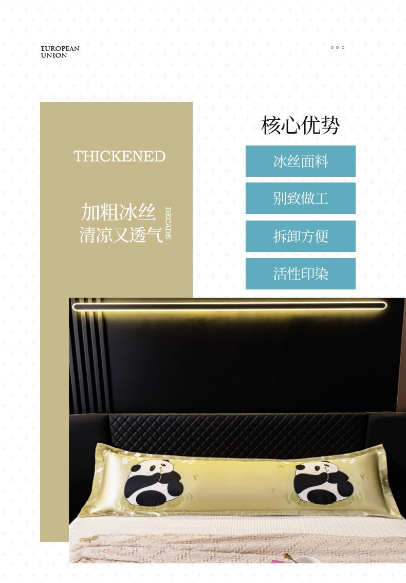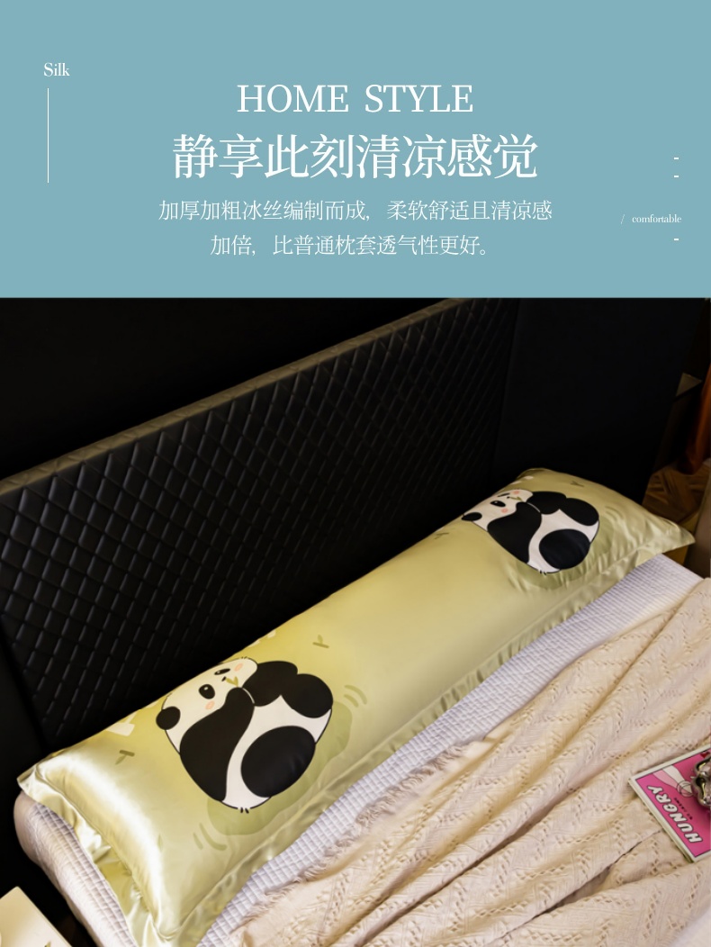 商品名称:圣比熊 2025新款可水洗冰丝双人枕套凉爽枕头套枕芯套 小熊猫