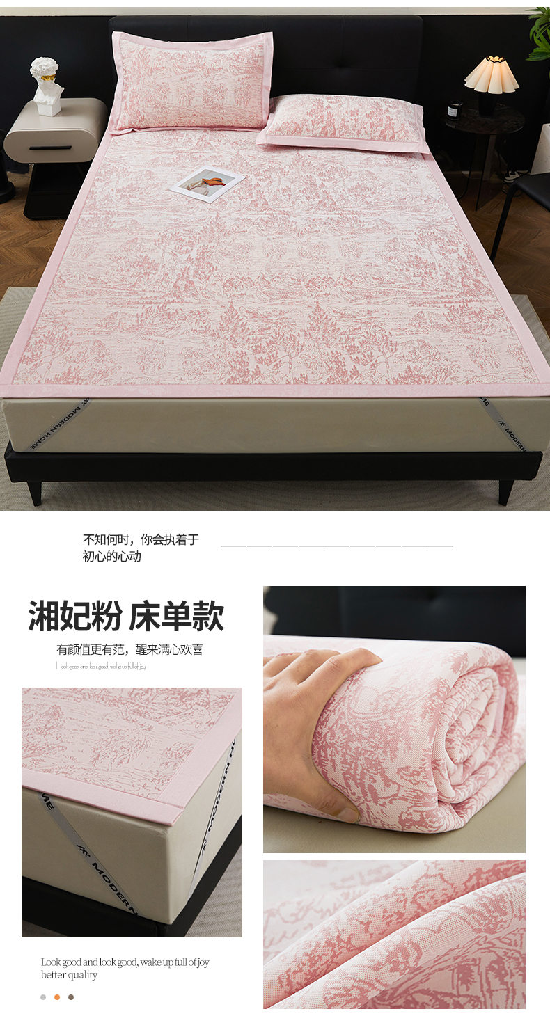 商品名称:卡派 2024新款抑菌提花冰丝席-莫奈系列 湘妃粉 床单款