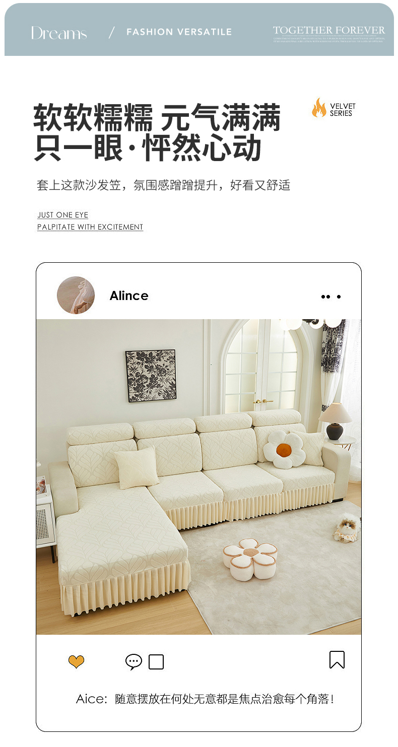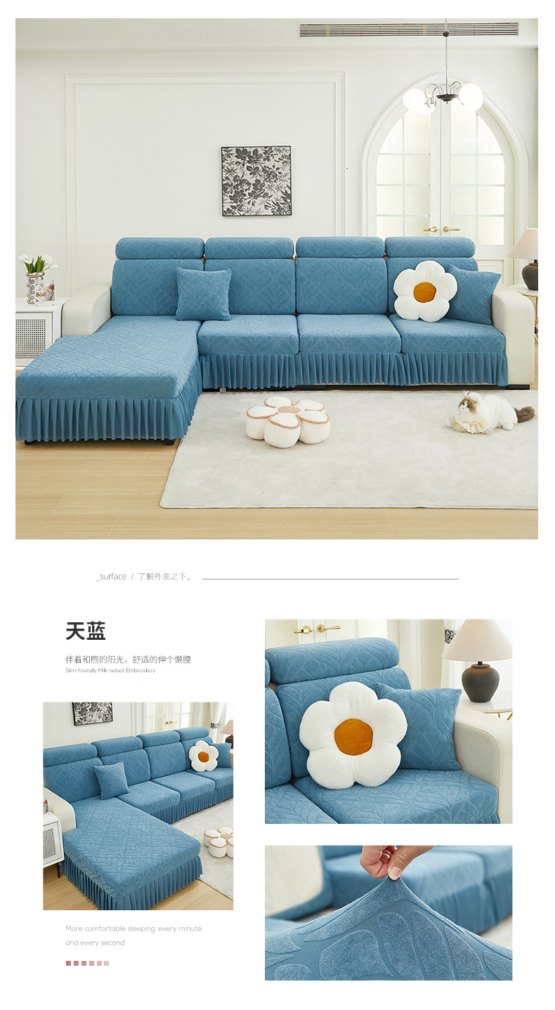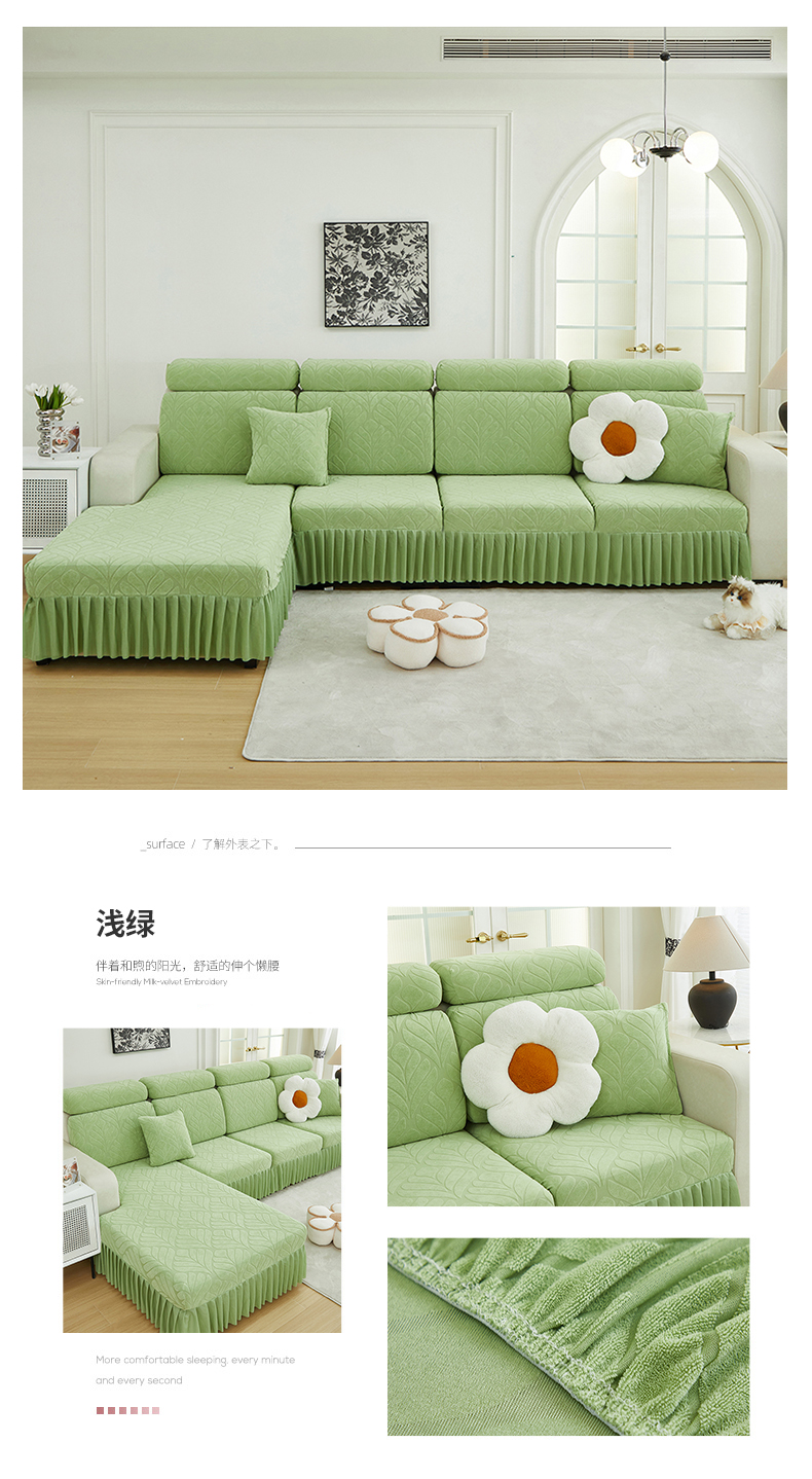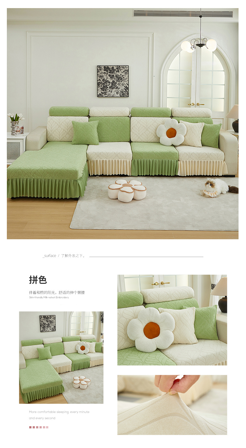 (总)天下布艺 2023新款纯色摇粒绒升级北欧百褶裙摆工艺通用沙发笠—斜格裙边,1,2,3,4,5,6,7,8,拼色1