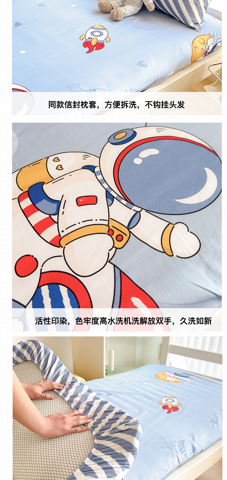 商品名称:金鑫汇 2024新款全棉卡通印花学生床垫套床笠系列 冲上云霄