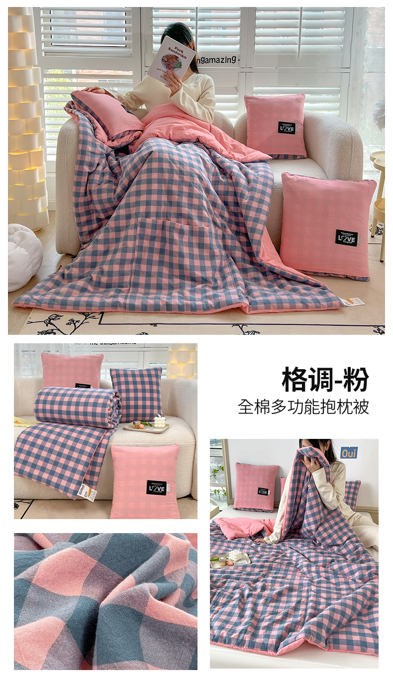 当前位置: 91家纺网 > 商品网购 > 居家日用 > 靠垫/抱枕 > 翰轩家居 2024新款全棉色织水洗棉抱枕被 格调-粉