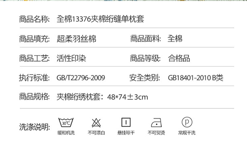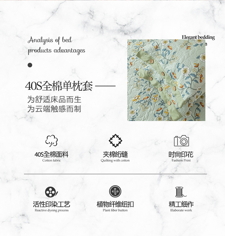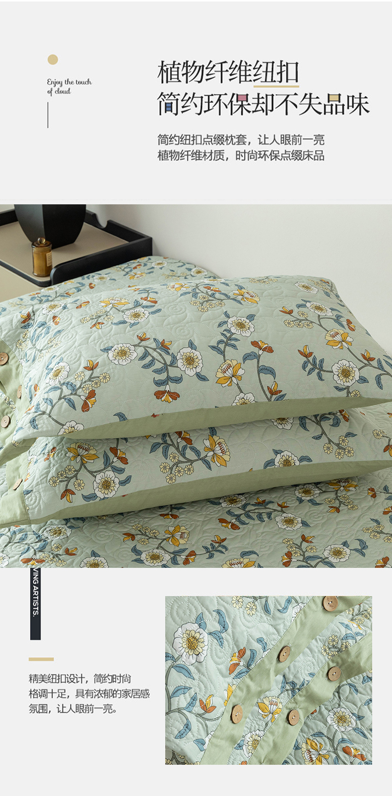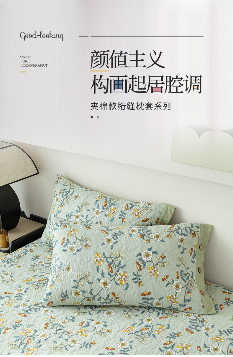 商品名称:优乐家纺 2025新款纯棉印花夹棉枕套系列-纽扣款 朵唯