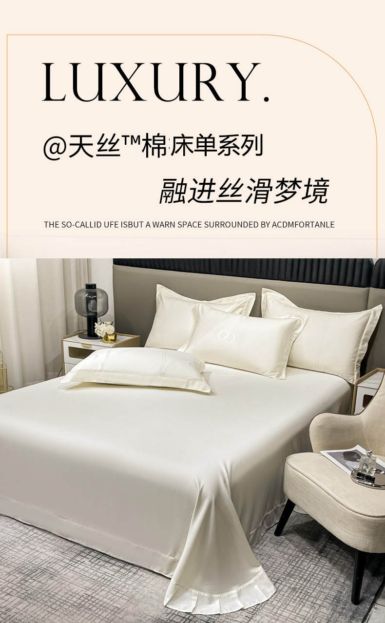 艾迪尚家纺 2025新款天丝棉提花单床单 莫里卡 雪域白
