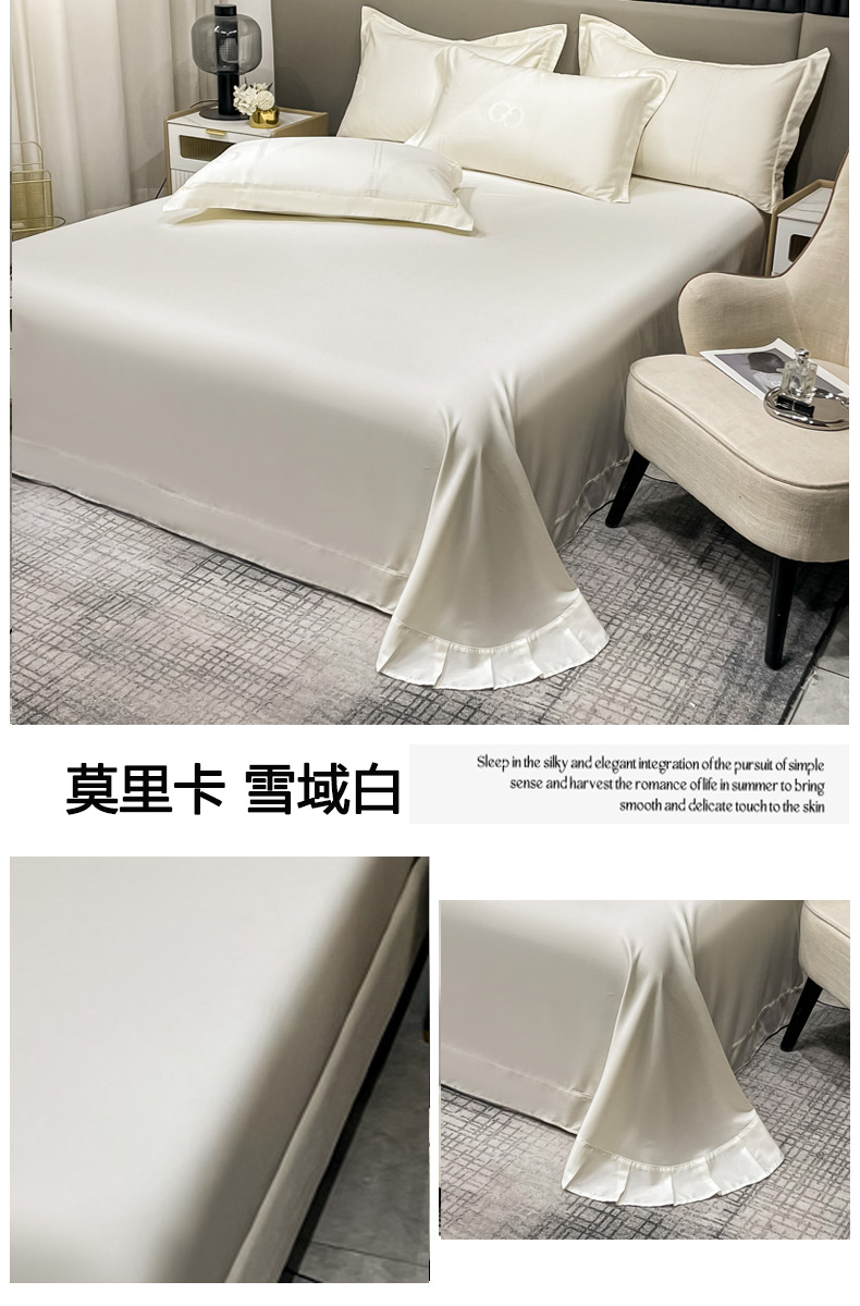 商品名称:艾迪尚家纺 2025新款天丝棉提花单床单 莫里卡 雪域白