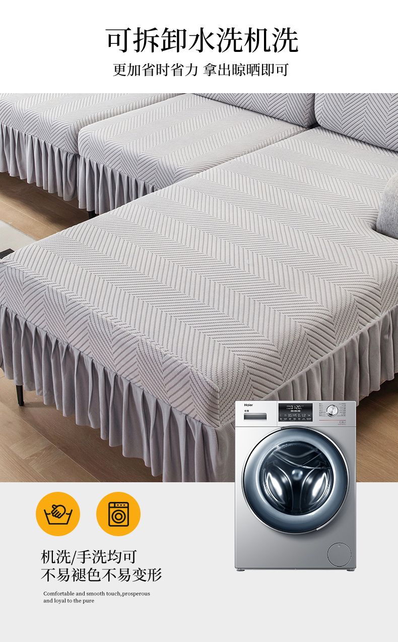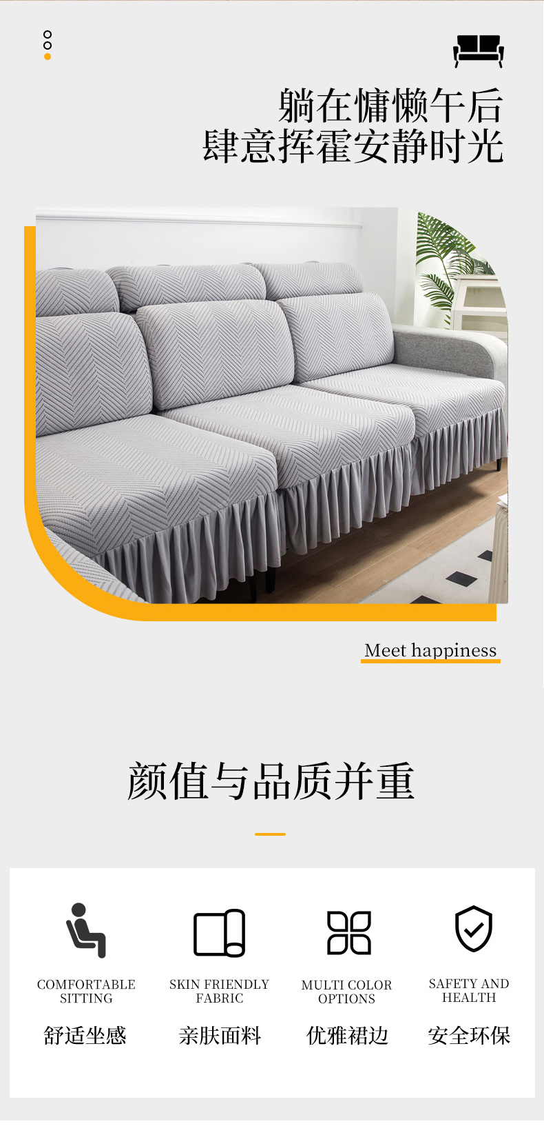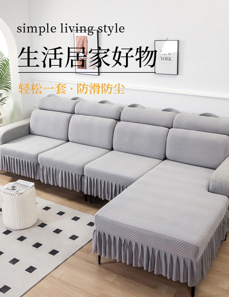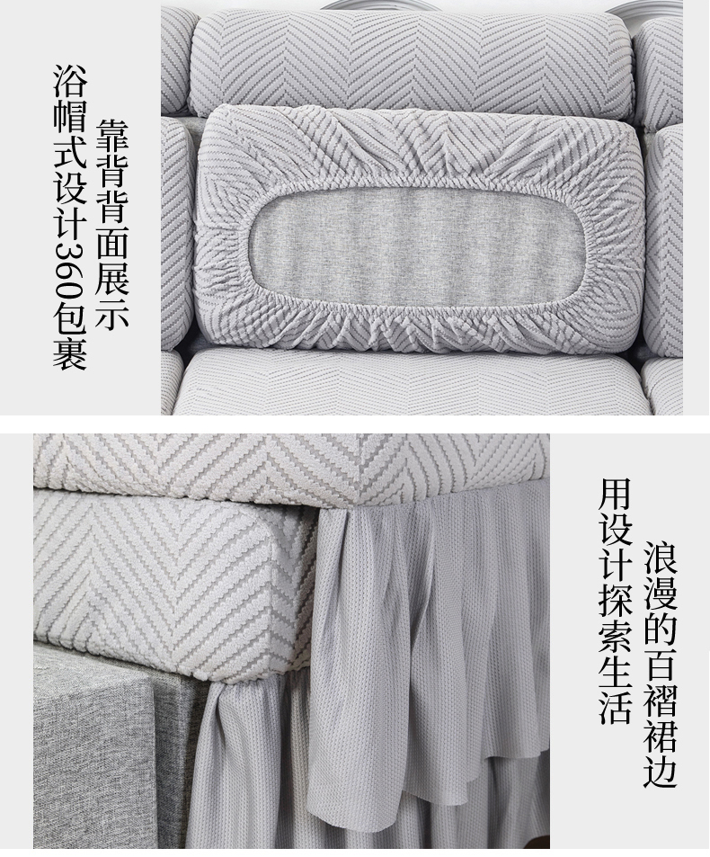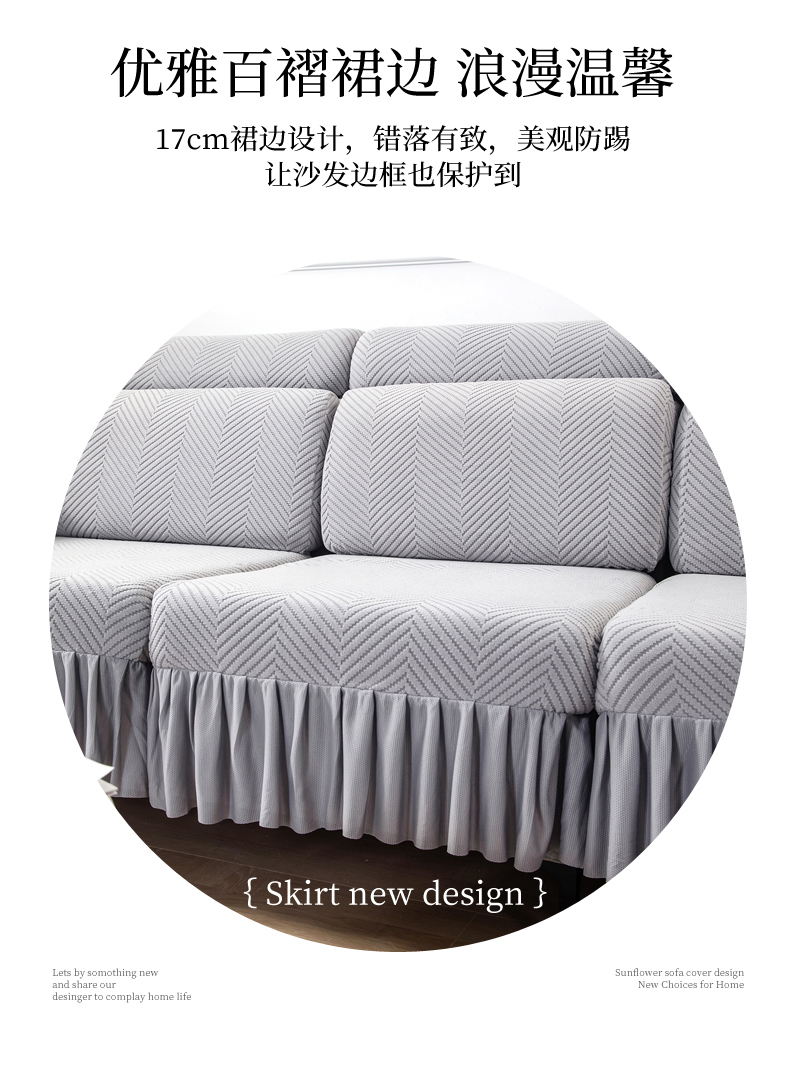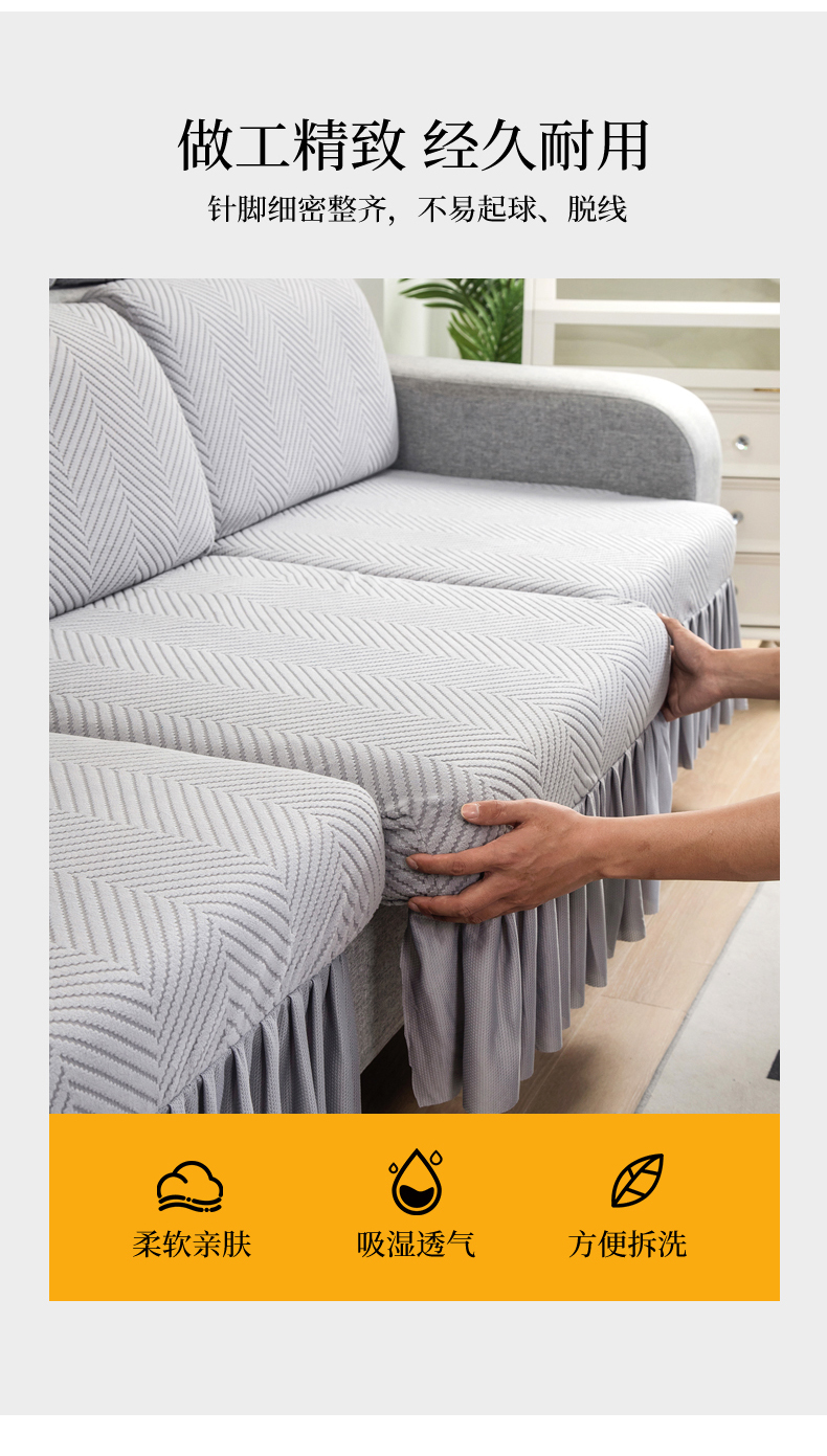 当前位置: 91家纺网 > 商品网购 > 居家布艺 > 坐垫/椅垫/沙发垫 > 沙发垫 > 千彤 2024新款裙边款弹力沙发套罩拉花绒人字纹系列沙发笠 银灰