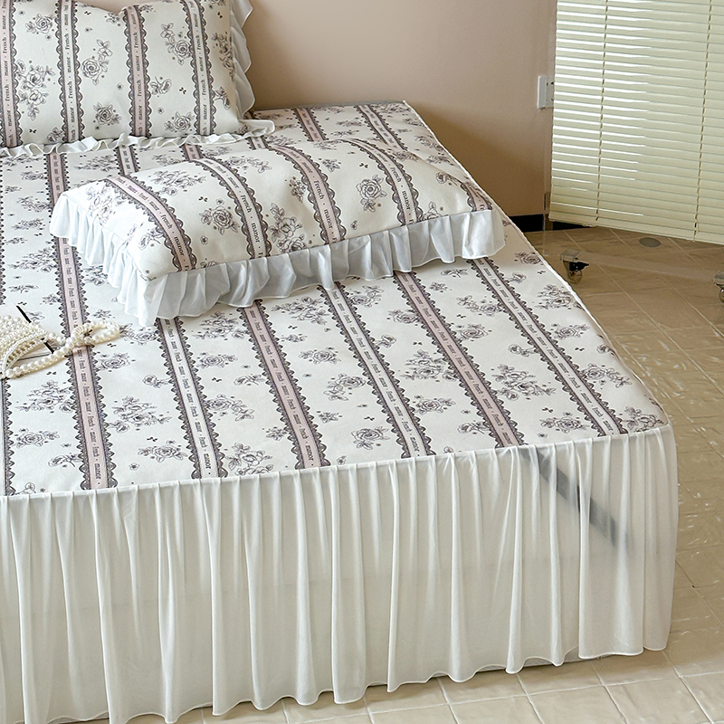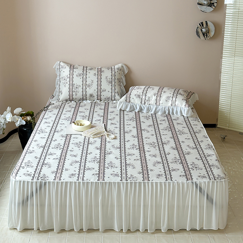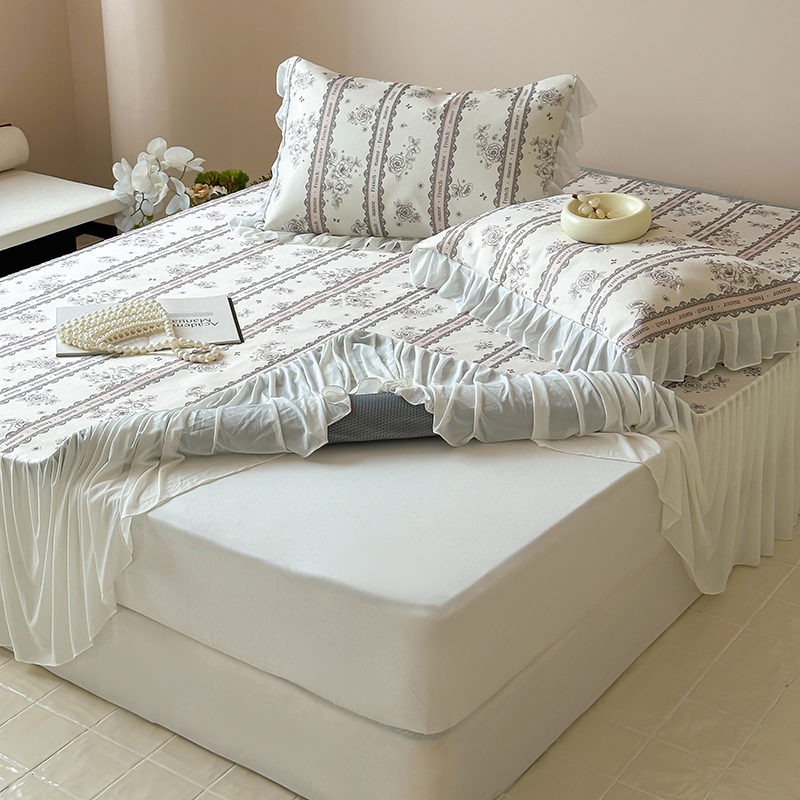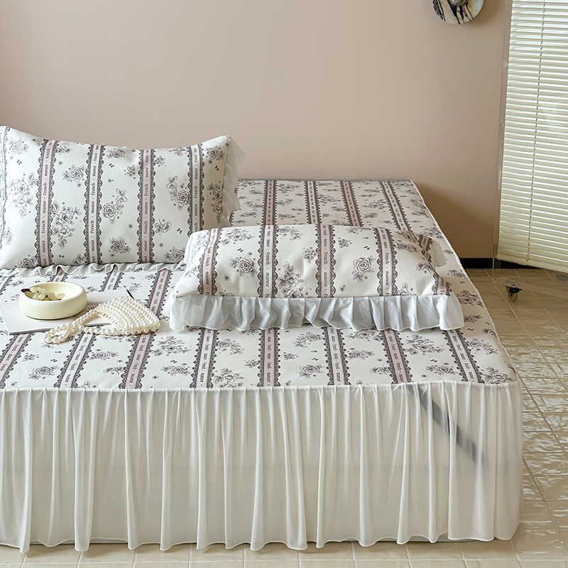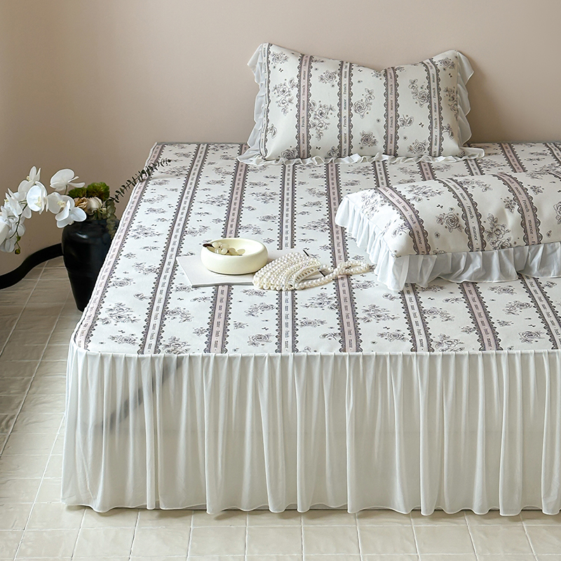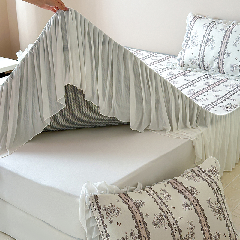 昔可 2024新款A类900D仙仙雪纺纱床裙款冰丝席三件套 法式庄园