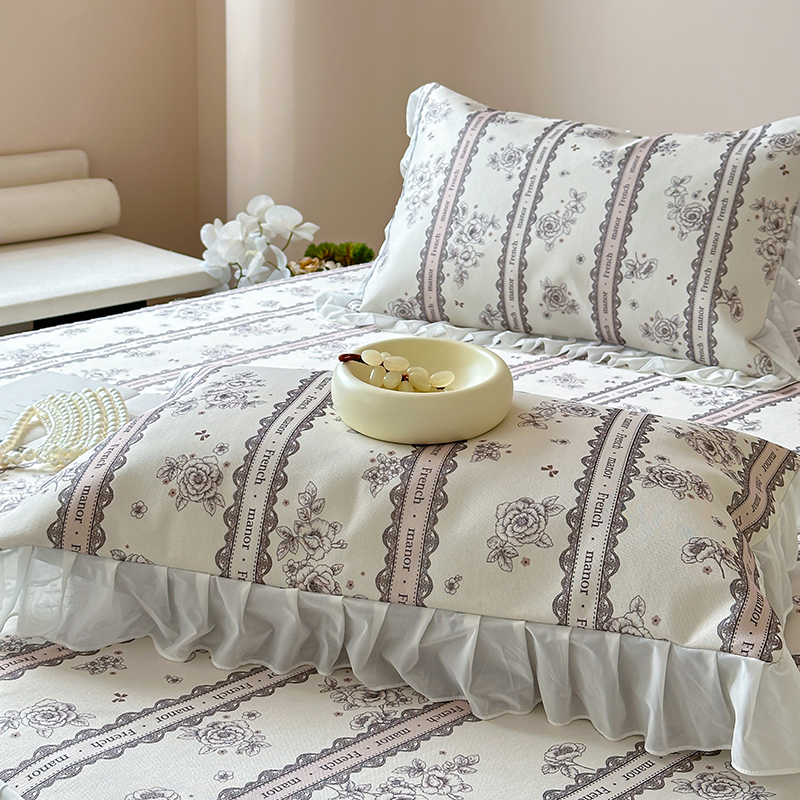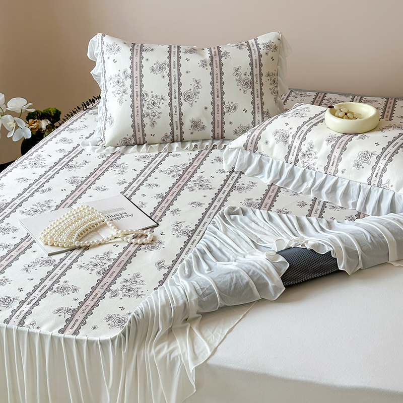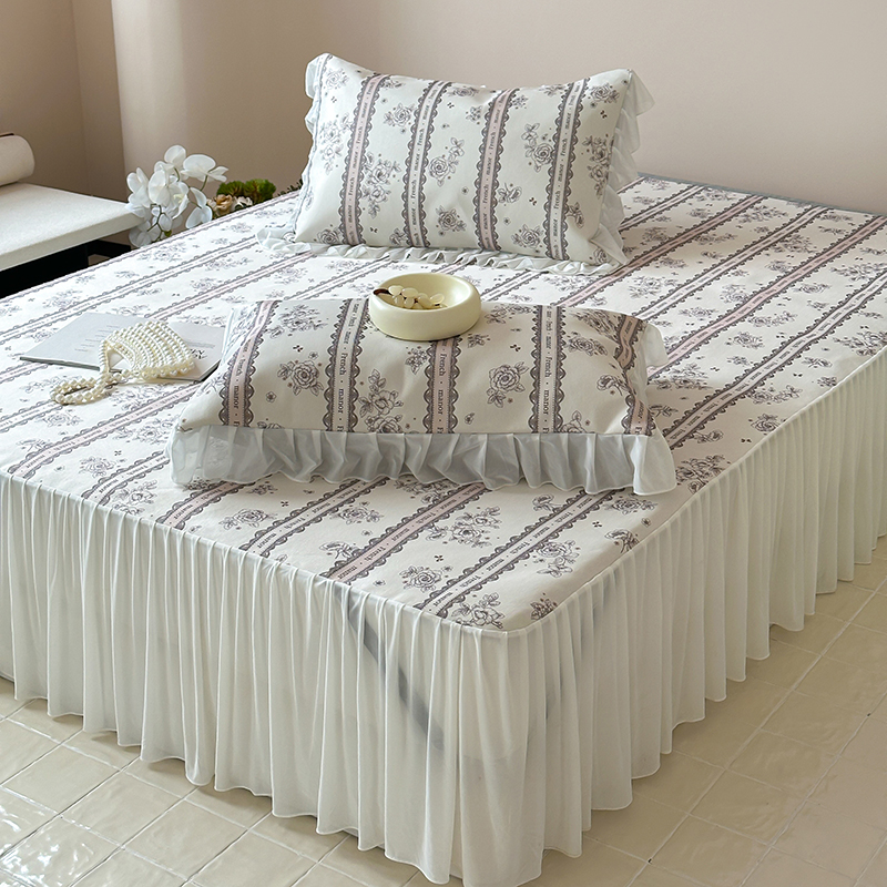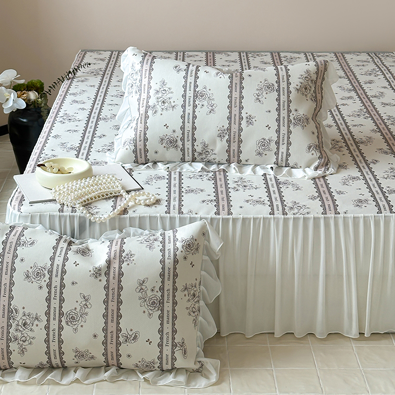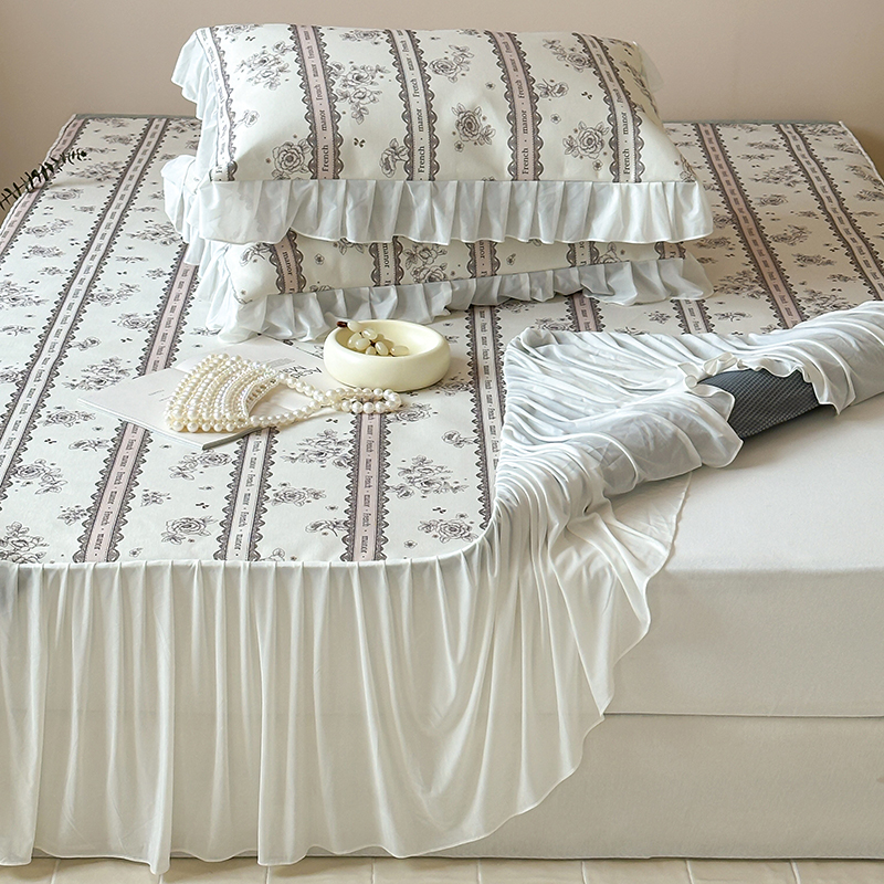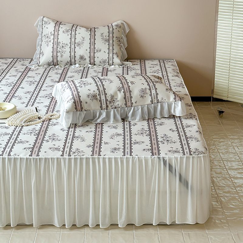 昔可 2024新款A类900D仙仙雪纺纱床裙款冰丝席三件套 法式庄园