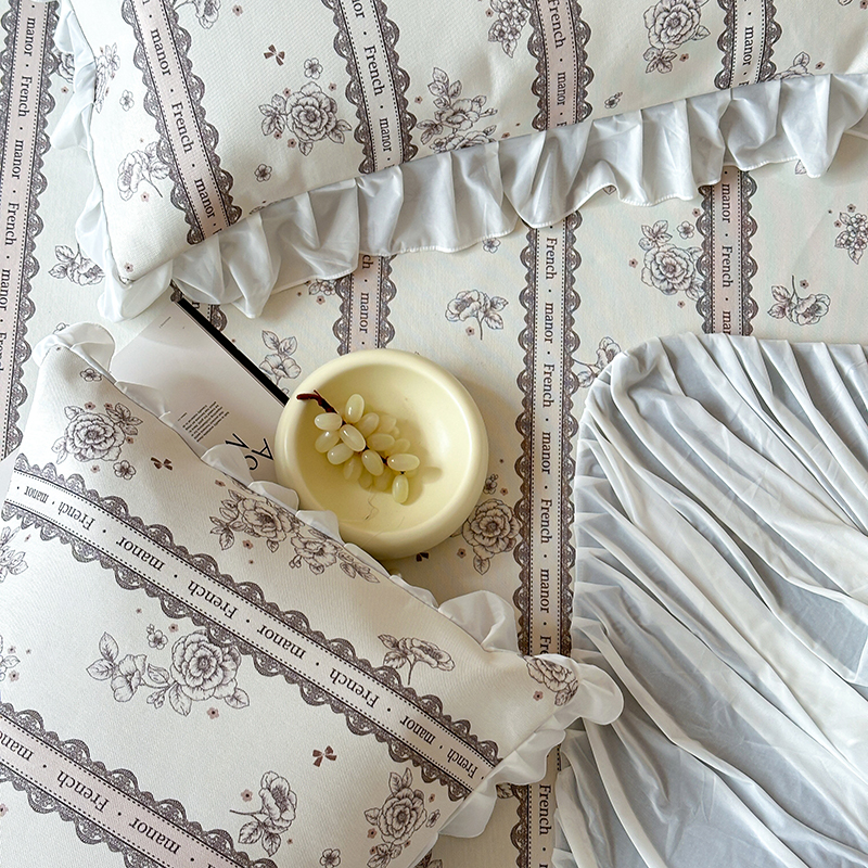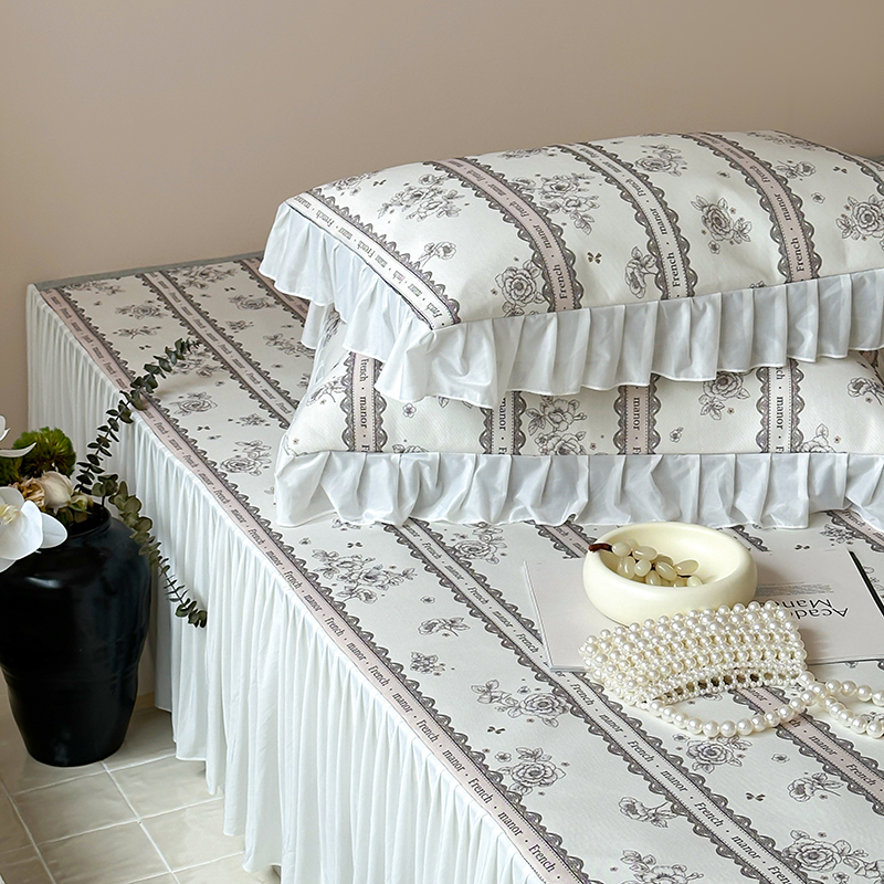 商品名称:昔可 2024新款A类900D仙仙雪纺纱床裙款冰丝席三件套 法式庄园