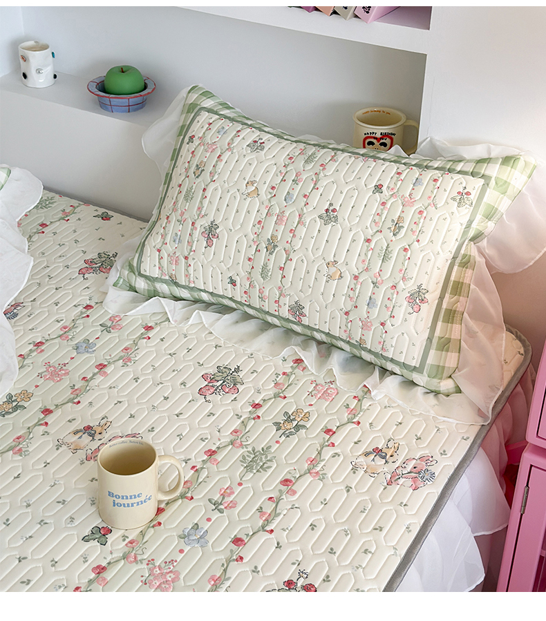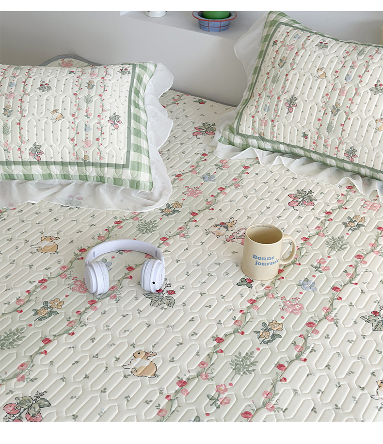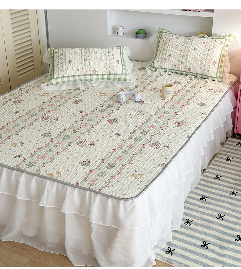昔可 新款床裙款乳胶凉席双层雪纺纱乳胶凉席三件套 草莓小兔