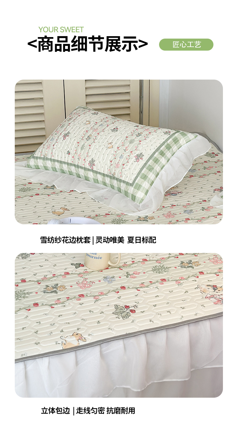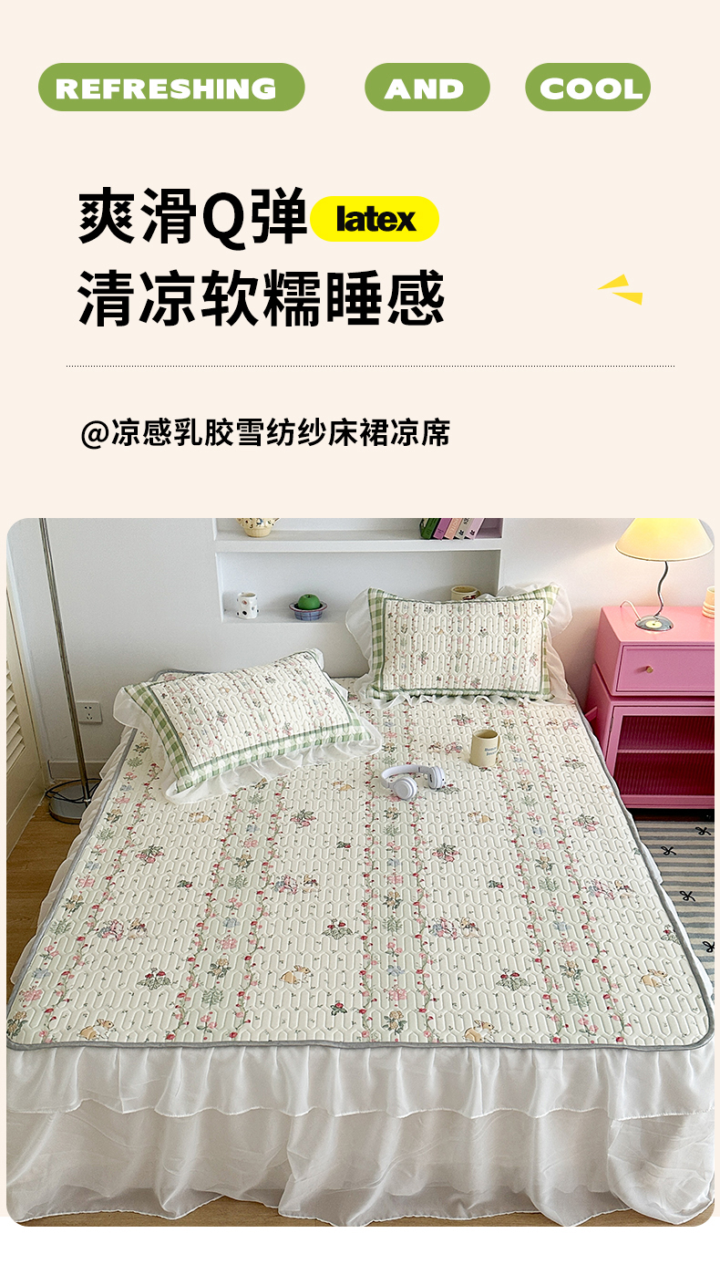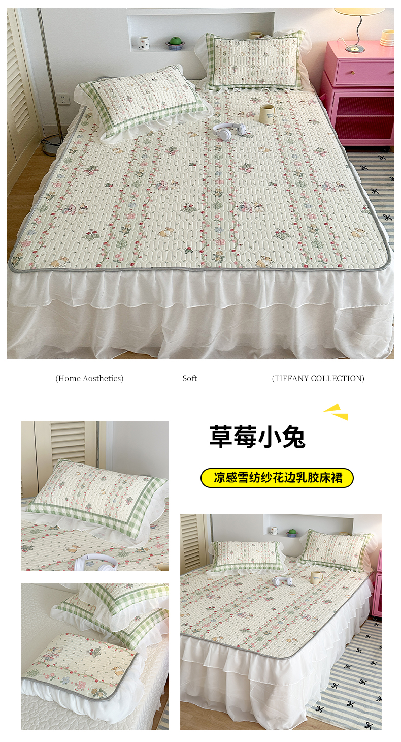 商品名称:昔可 新款床裙款乳胶凉席双层雪纺纱乳胶凉席三件套 草莓小兔